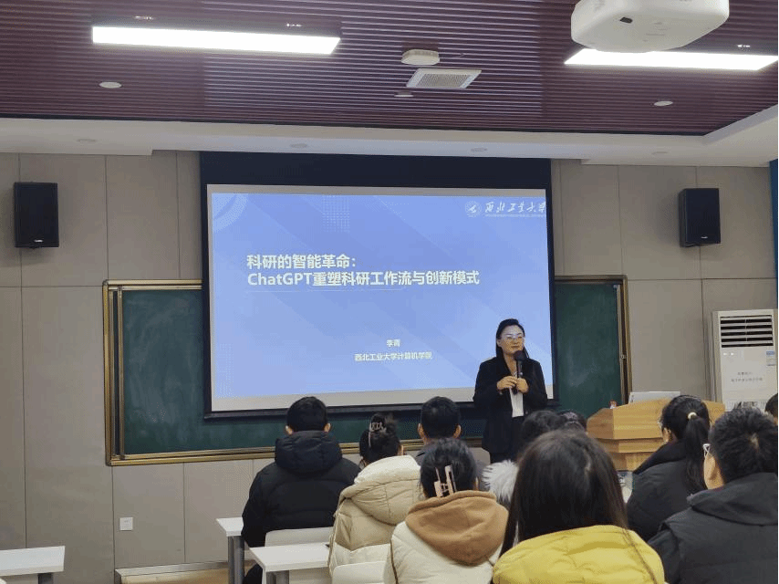 2024年12月20日上午,西北工业大学李青副教授应邀在amjs澳金沙门214报告厅做题为“科研的智能革命:ChatGPT重塑科研工作流与创新模式”的学术报告。报告会由刘慧副教授主持,amjs澳金沙门部分师生参加了此次报告会。