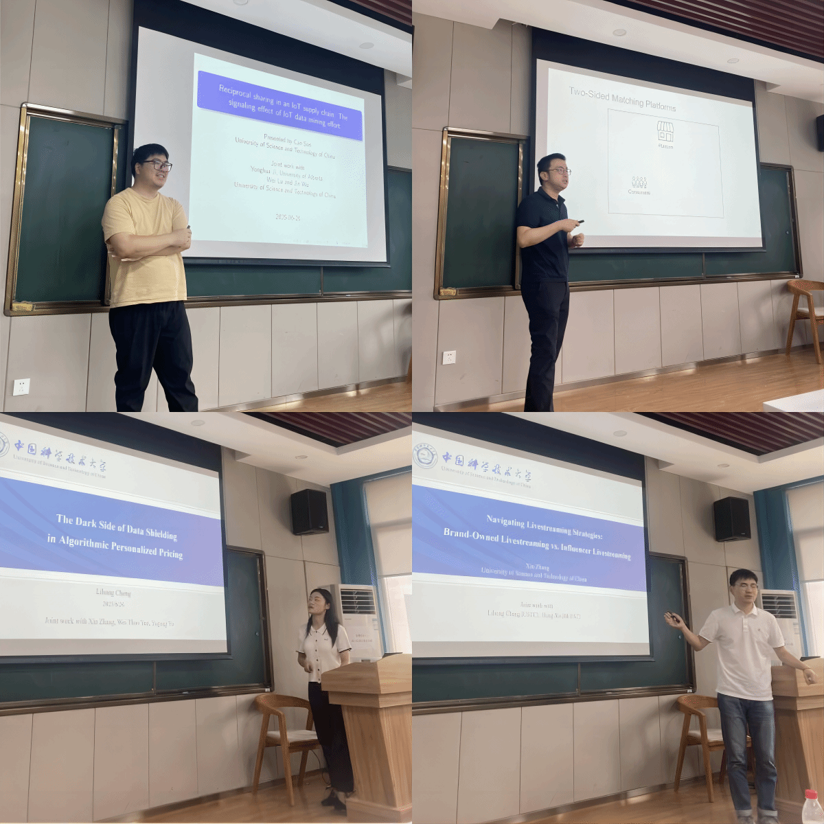 首场报告由中国科学技术大学特任研究员孙灿博士主讲,题目为《物联网供应链中的互惠共享:物联网数据挖掘努力的信号效应》。孙博士毕业于加拿大阿尔伯塔大学,其研究专注于信息技术(尤其是物联网)对供应链与商业模式的影响。他在报告中深入分析了制造商如何通过投入物联网数据挖掘努力,向零售商传递产品质量信号,从而实现互惠共享与供应链协同。孙灿博士现任SSCI期刊《Information Technology and Management》副编辑,其研究成果发表在《Information Systems Research (ISR)》、《Production and Operations Management (POM)》等国际顶级期刊。