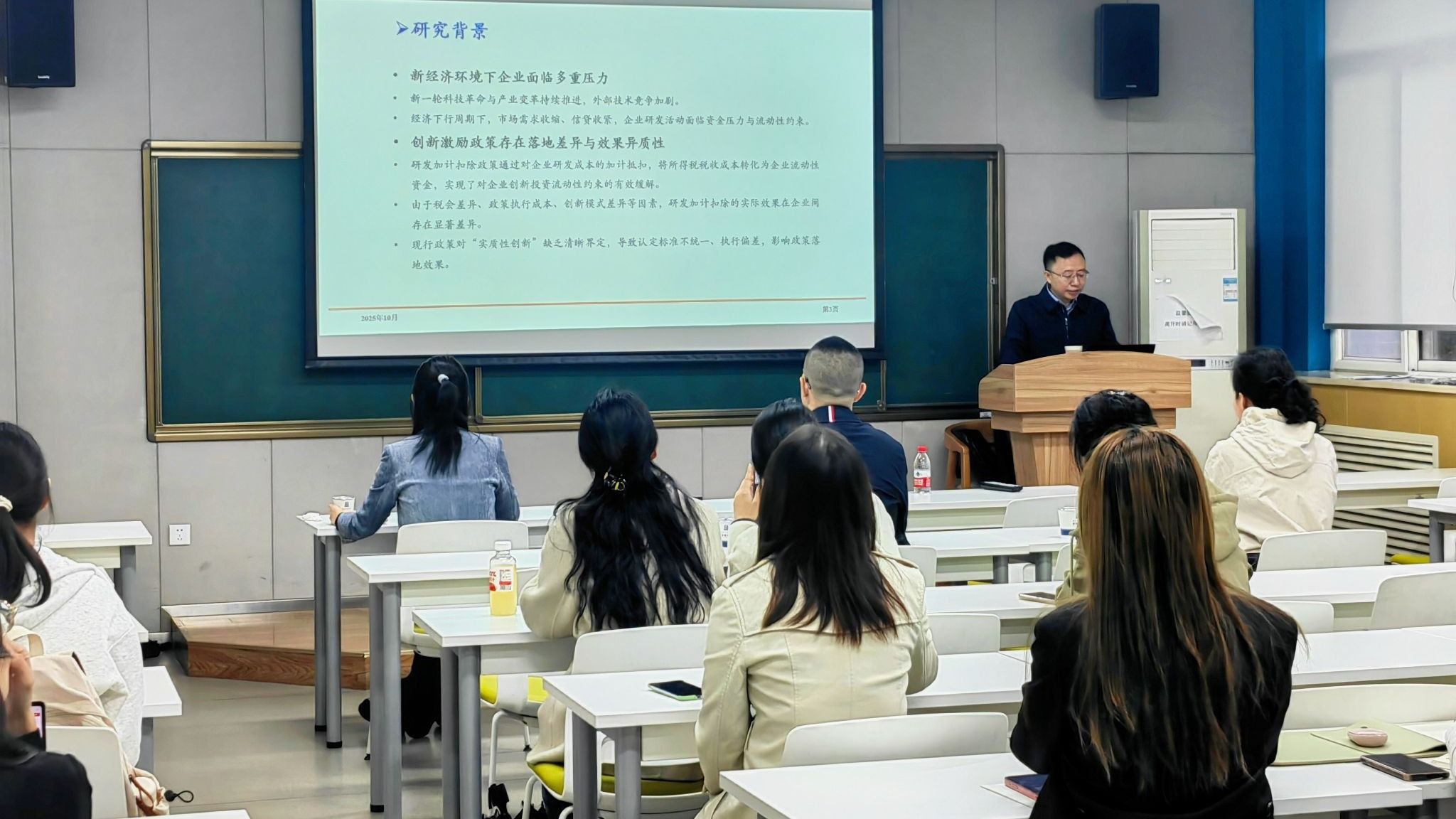 10月11日上午,应amjs澳金沙门邀请,对外经济贸易大学祝继高教授在长安校区学院楼214报告厅与学院师生展开学术交流,作题为“创新成本分担的溢出效应:研发费用加计扣除政策对劳动收入份额的影响研究”的学术讲座。本次讲座由amjs澳金沙门田皓文副教授主持,学院师生共同参与。