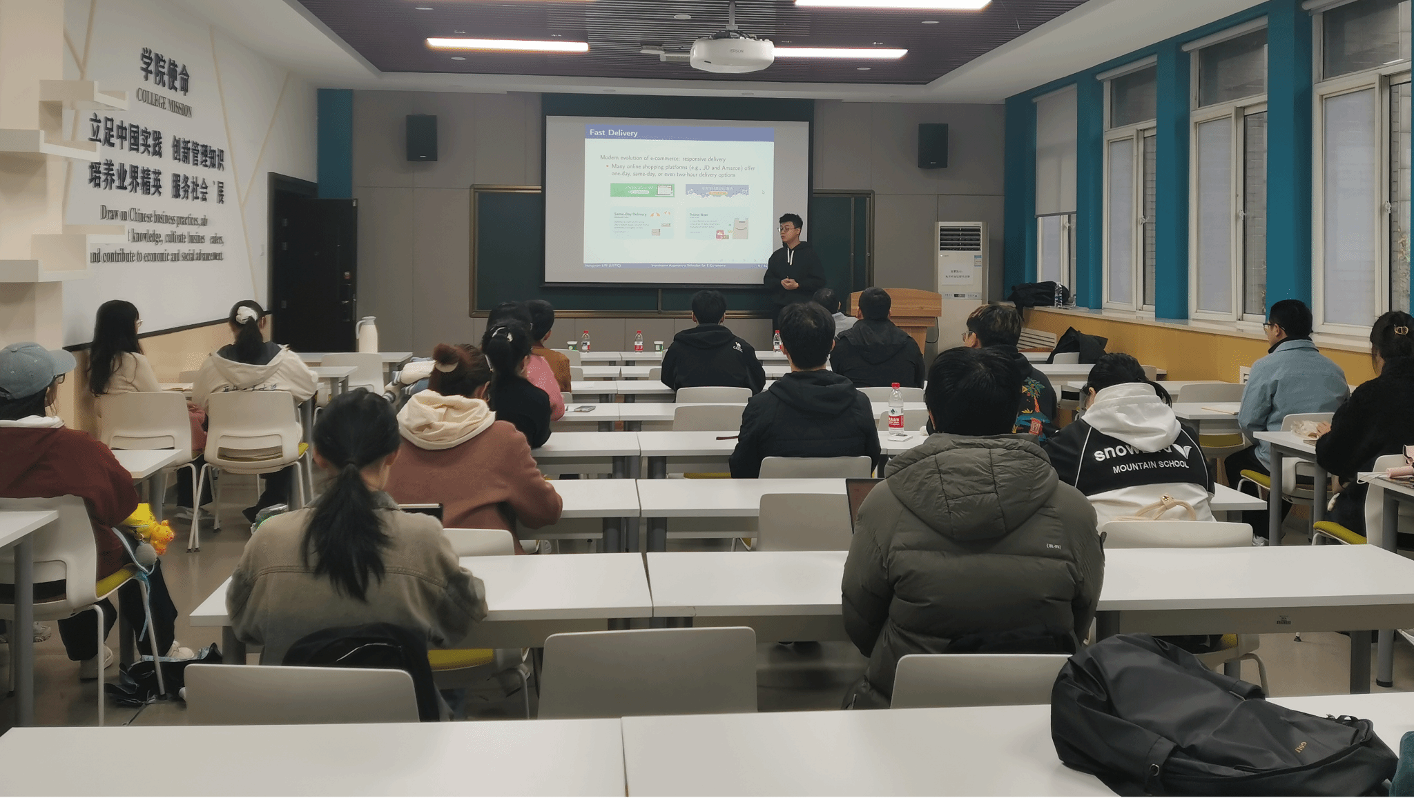 2025年10月21日,应amjs澳金沙门邀请,中国科学技术大学科技商学院林宏远副教授在学院214会议室作题为“基于Birkhoff-von Neumann分解的仓储品类选择启发式算法”的学术报告。报告会由amjs澳金沙门傅陈翼教授主持,学院部分师生参加了此次报告会。