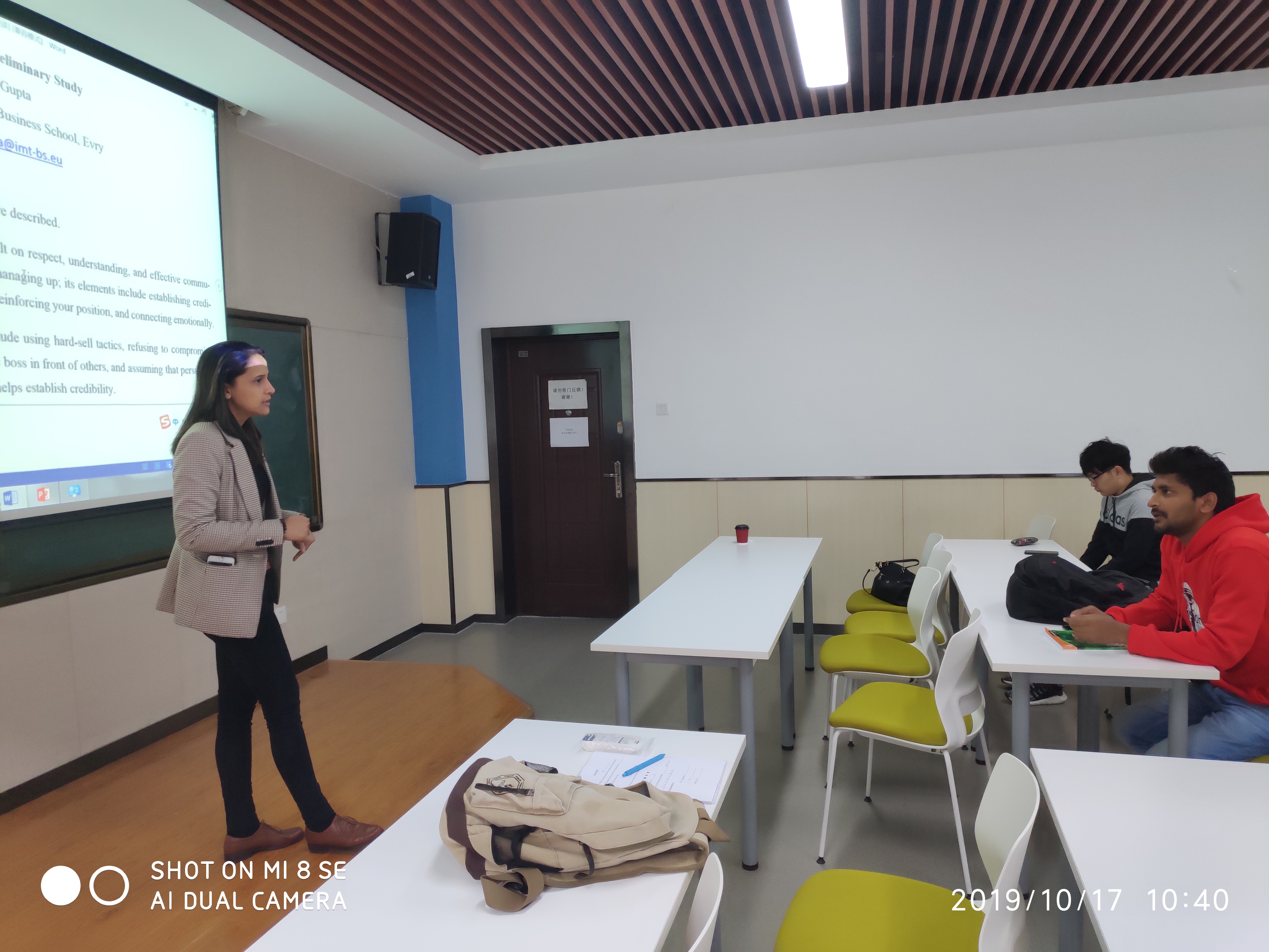 2019年10月17日,法国矿业电信商学院(原法国国立高等电信amjs澳金沙门)Bhumika Gupta教授应邀来amjs澳金沙门访问,并于上午10:30至12:00在长安校区amjs澳金沙门210室为学院师生作了学术报告。报告会由许燕副教授主持,多名研究生以及国际留学生参加了报告会。