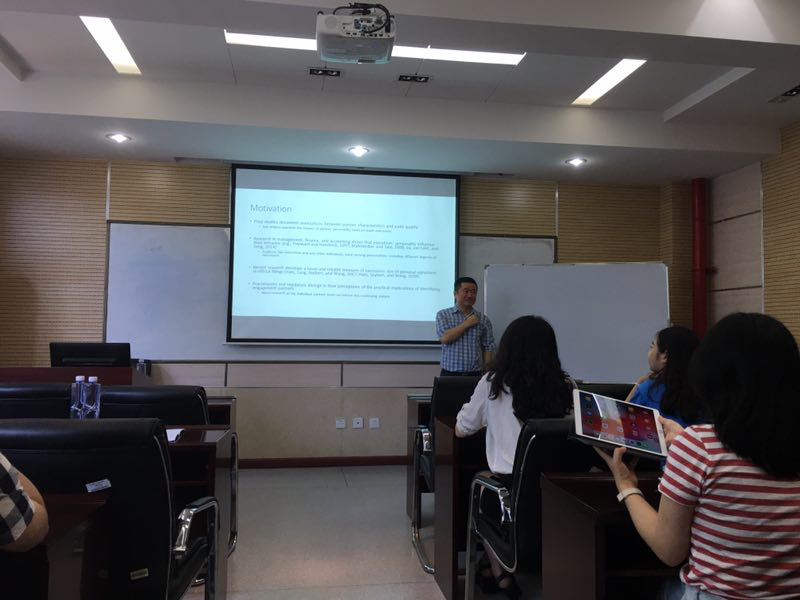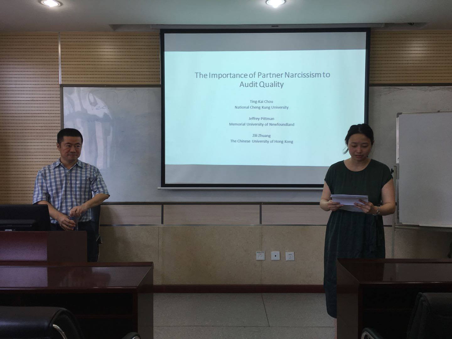 2019年7月1日上午,香港中文大学会计系Zhuang Zili(庄子力)副教授应邀在我院做了题为“The Importance of Partner Narcissism on Audit Quality”的学术报告。报告会由amjs澳金沙门冷奥琳副教授主持,学院各年级研究生和博士生参加了本次报告会。