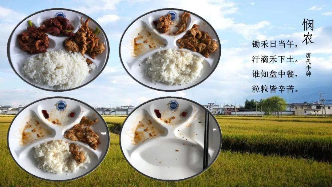 研十支部-穆志磨:我们小的时候都背过《悯农》这首诗,本应该是从小就刻在脑子里,记在心底里的传统美德,可在现实生活中存在着随处可见的粮食浪费现象。有的人觉得饭菜不好吃,吃不了两口就扔了;有的人明明吃不了那么多,非要多点一份饭菜;有的人为了面子,在饭店里点了许多吃不完的菜。每个人都应该体验一下粮食从播种到收割的全过程,方能体会到其中的劳作与辛苦,方能明白粮食的珍贵,方能感受到如今生活的甜蜜。每个人都应该体验一下饥饿的感觉,不是那种我们平时因为忘记吃饭而感到的饥饿,想想那些为新中国成立在战争中忍受饥饿的先烈们,想想那些因为贫穷而饥饿的非洲儿童,我们可能才会意识到浪费粮食是一种可耻行为。