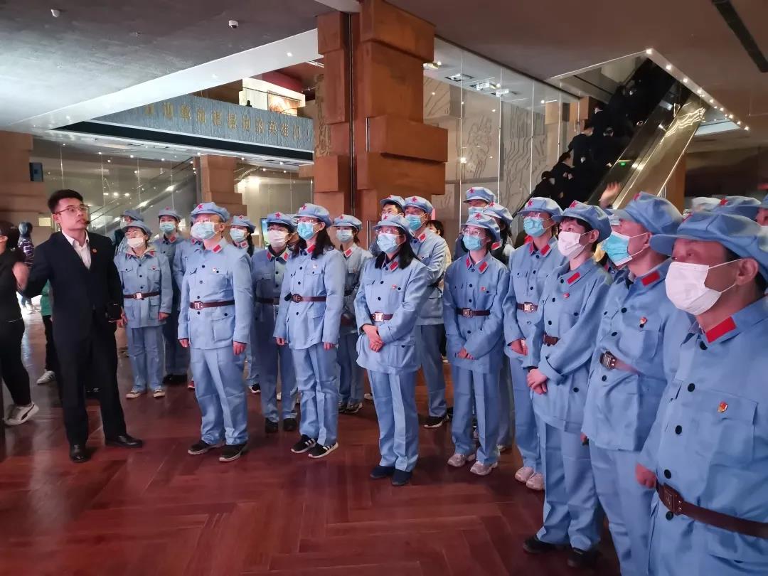 到达照金后,大家换上了红军服,分为了三支队伍进行合作比拼,设置了不同的队名、口号和队旗。本次主题教育实践活动正式启动。