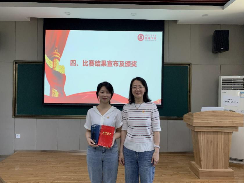 选手们演讲完之后,白洁老师对本次活动进行总结。做为新时代的青年党员学子,在建党百年关键节点,通过自己的视角,讲述百年党史中一张照片背后的党史故事,是一件很有意义的事情。本次活动紧紧围绕建党百年为主题,各位选手视角各具特色,故事内容丰富详实,宋振中等红色人物、红船精神等红色精神、《志愿军战歌》等红色歌曲、渣滓洞中的五星红旗、《悬崖之上》等红色影视无一不扣动在场各位的心弦。白洁老师希望同学们将学习党史做为一种自觉和习惯,学史明理、学史增信、学史崇德、学史力行,将学习党史的思考和力量,转化为实际行动,勇担时代责任和历史使命,为实现中华民族伟大复兴的中国梦而努力奋斗。