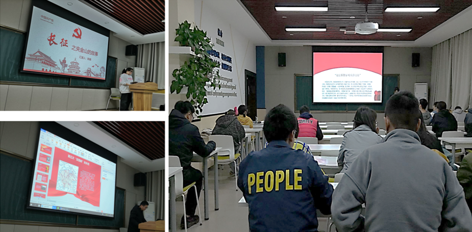 陈婧同志讲述了长征中夹金山的故事。夹金山是长征途中的第一座大雪山,红军战士战胜了这座被当地群众称为只有仙女才能飞过的山,对中国革命产生了伟大意义。