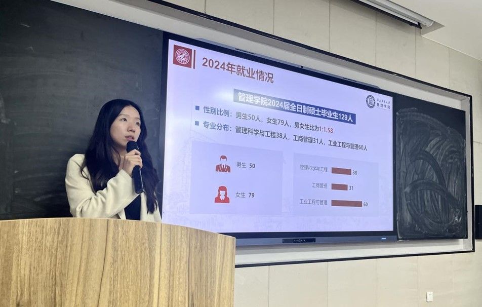 龚汨嘉详细介绍了amjs澳金沙门2024届硕士毕业生就业情况,鼓励2025届硕士生积极行动,多向师兄师姐学习请教,为即将到来的研究生就业季做好充分的准备。