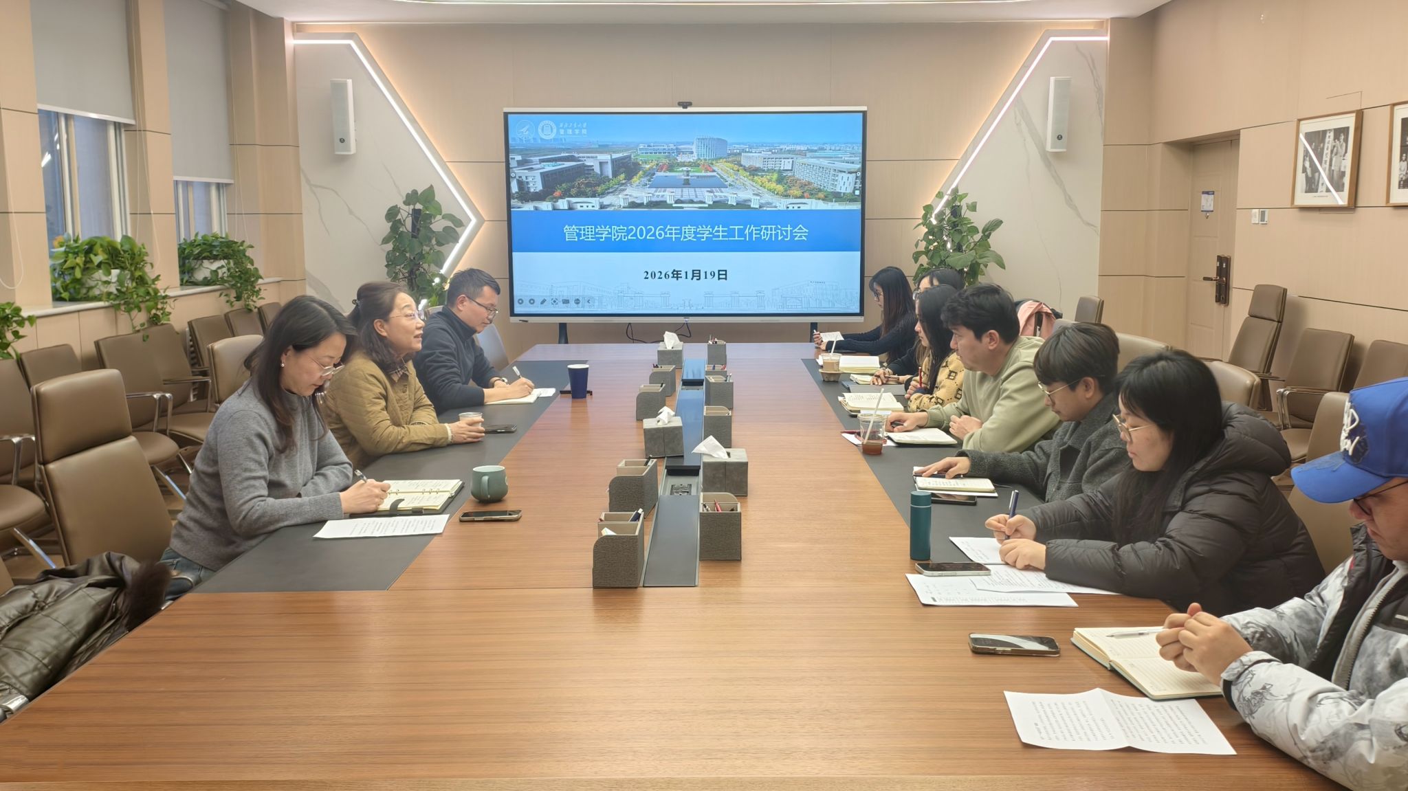 为全面总结过去一年的工作成效,系统谋划2026年的重点工作,提升学生工作质量,经过前期准备,1月19日至20日,amjs澳金沙门召开2026年度学生工作研讨会。党委书记张爽、党委副书记王海啸、六级职员白洁和全体辅导员参加,会议由王海啸主持。