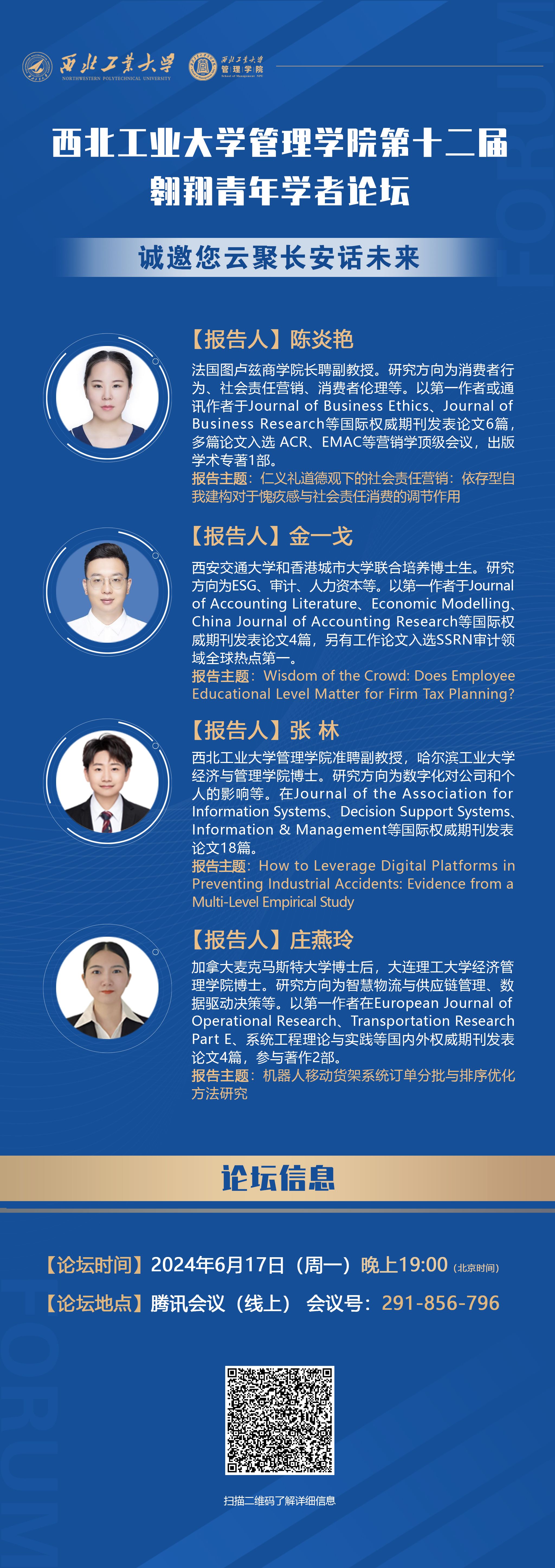 amjs澳金沙门第十二届翱翔青年学者分论坛将于2024年6月17日拉开帷幕。本次论坛将采用学术报告、引才政策宣讲和人才洽谈等形式帮助海内外优秀学者真切感受学院的学术氛围,全面了解学院学科建设、人才培养、科学研究、师资队伍建设等发展情况和人才引育的政策体系,深入洽谈合作发展。