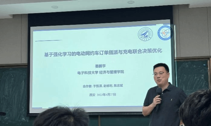 2023年4月27日下午,应amjs澳金沙门邀请,电子科技大学经济与amjs澳金沙门晏鹏宇教授在长安校区amjs澳金沙门作了题为《基于强化学习的电动网约车订单指派与充电联合决策优化》的学术报告。本次报告由张静文教授主持,amjs澳金沙门教师和研究生参加了报告会。
