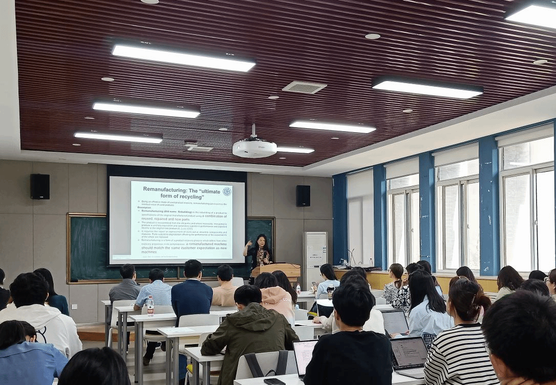 2023年5月30日上海交通大学安泰经济与amjs澳金沙门朱庆华教授应邀于长安校区amjs澳金沙门做了题为“数据驱动的再制造产品营销决策研究”的报告会,本次报告由贾明教授主持,吸引了众多师生聆听学习。