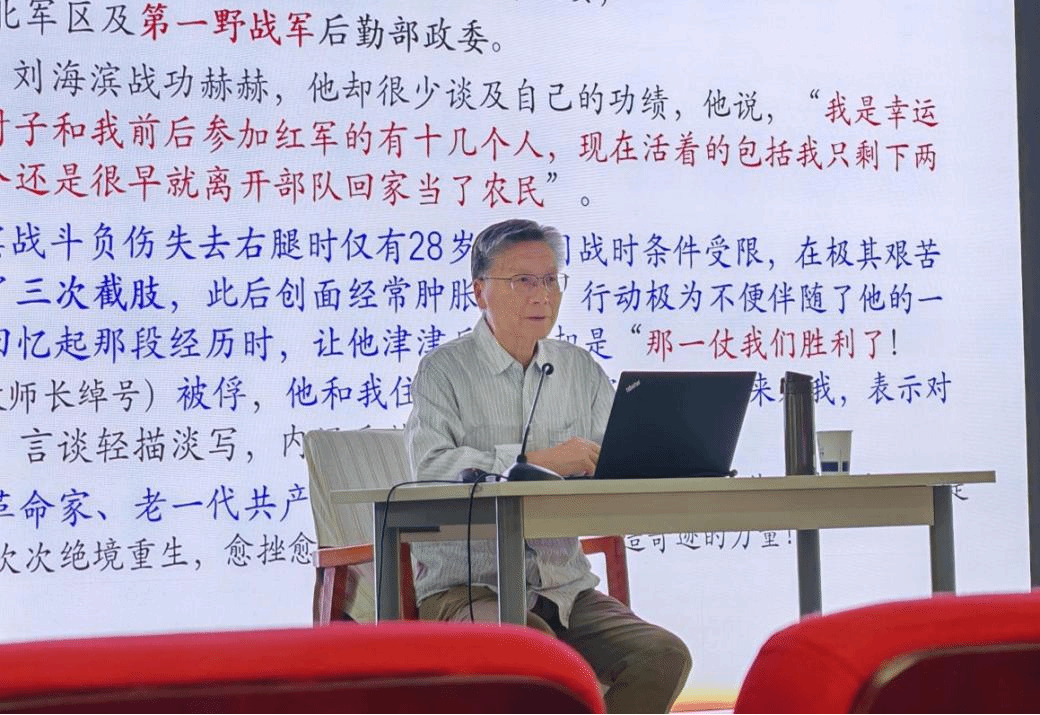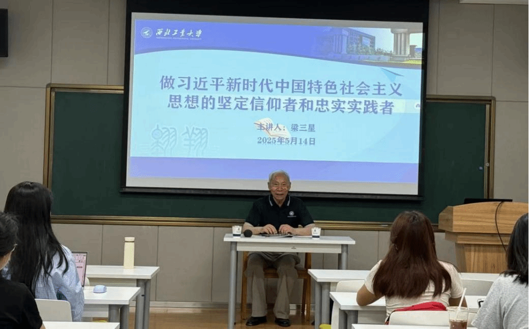 5月14日,学校关工委“银发宣讲员”、amjs澳金沙门退休教授梁三星以《做习近平新时代中国特色社会主义思想的坚定信仰者和忠实实践者》为题,回顾了中国共产党的百年奋斗征程,并激励工大学子要以习近平新时代中国特色社会主义思想为指引,做坚定信仰者、忠实实践者。