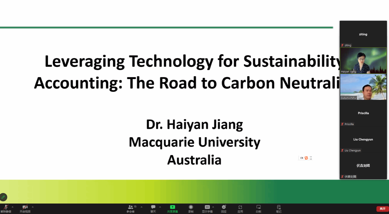 2023年12月3日上午,应amjs澳金沙门邀请,澳大利亚麦考瑞大学会计学副教授姜海燕通过线上形式作了题为“应用技术进行可持续性会计核算:碳中和之路(Leveraging technology for sustainability accounting: The road to carbon neutrality)”的讲座。本次讲座由苏坤教授主持,amjs澳金沙门会计系部分教师和研究生参加此次讲座。
