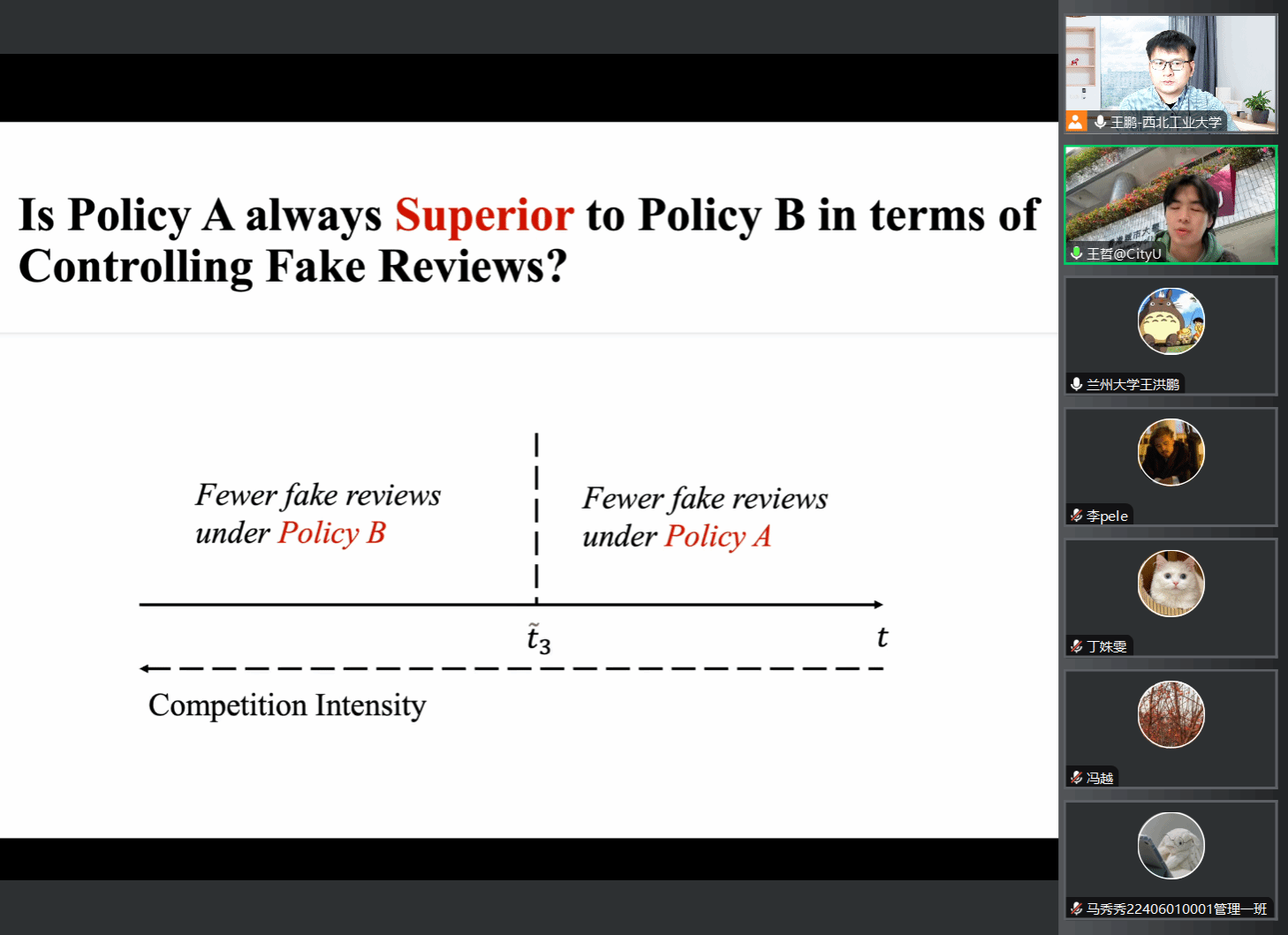 2024年11月29日,应amjs澳金沙门邀请,香港城市大学信息系统系王哲助理教授线上为amjs澳金沙门师生作题为《评论展示政策如何影响平台打击虚假评论的动机:一个博弈论的视角》的学术讲座,本次讲座为amjs澳金沙门2024年海外系列讲座第30期,由王鹏副教授主持。