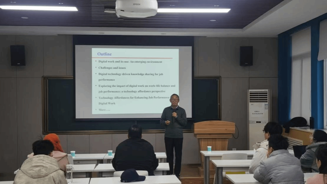 讲座最后,邓和浦教授就参会师生的问题进行了解答并通过工作坊进一步和我院研究生进行深入研究探讨。通过本次交流,师生们对数字化办公与工作绩效之间的联系有了深刻的认识和理解。