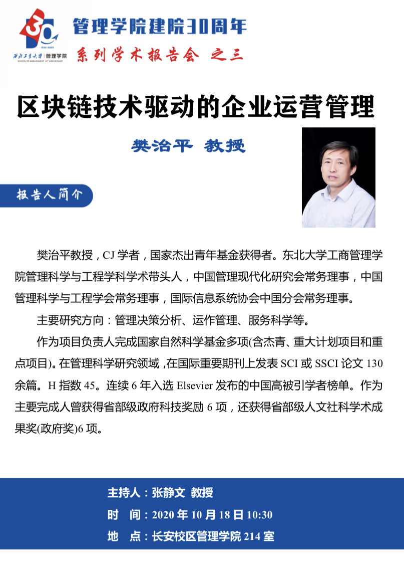 【amjs澳金沙门建院30周年系列学术报告会之三】区块链技术驱动的企业运营管理