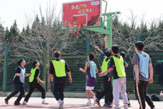 球场上奔跑的身影,篮球进筐的声音,球鞋摩擦球场的声音,为这次活动留下了许多精彩的镜头与美好的回忆;队员们默契的传球、精准的投篮、利落的进球,举手投足间处处彰显着团结协作的力量。中场环节,为了增强比赛趣味性,增加了双方观众投篮争分的环节,女同学们和老师们也都纷纷参与进来。