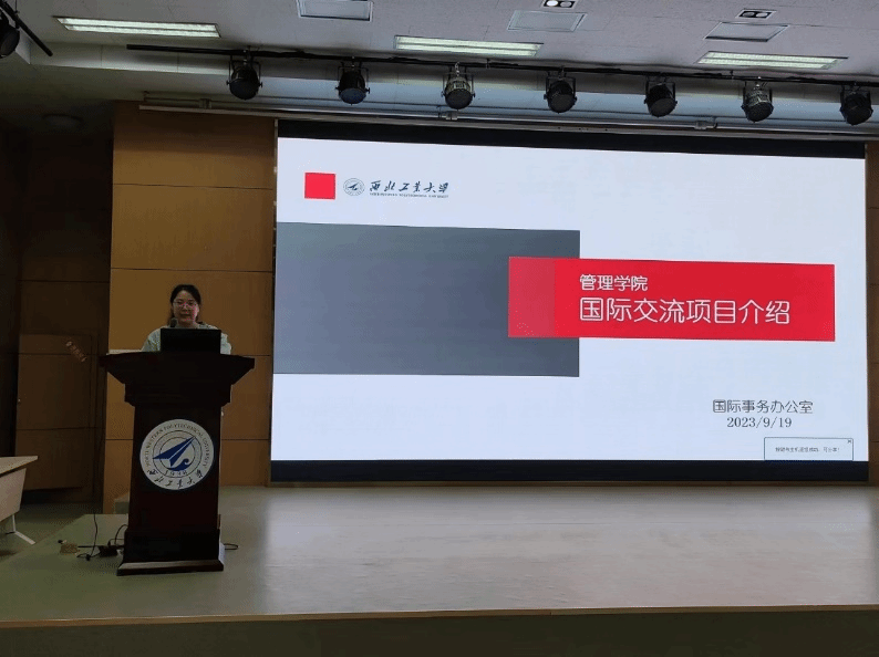 2023年9月19日上午10:30,“国际交流项目”宣讲会于长安校区力土报告厅举行。amjs澳金沙门国际事务办公室权梦甜子,2023级辅导员李恒宇等出席了本次宣讲会。宣讲会由李恒宇主持,全院近百名2023级新生同学参加。