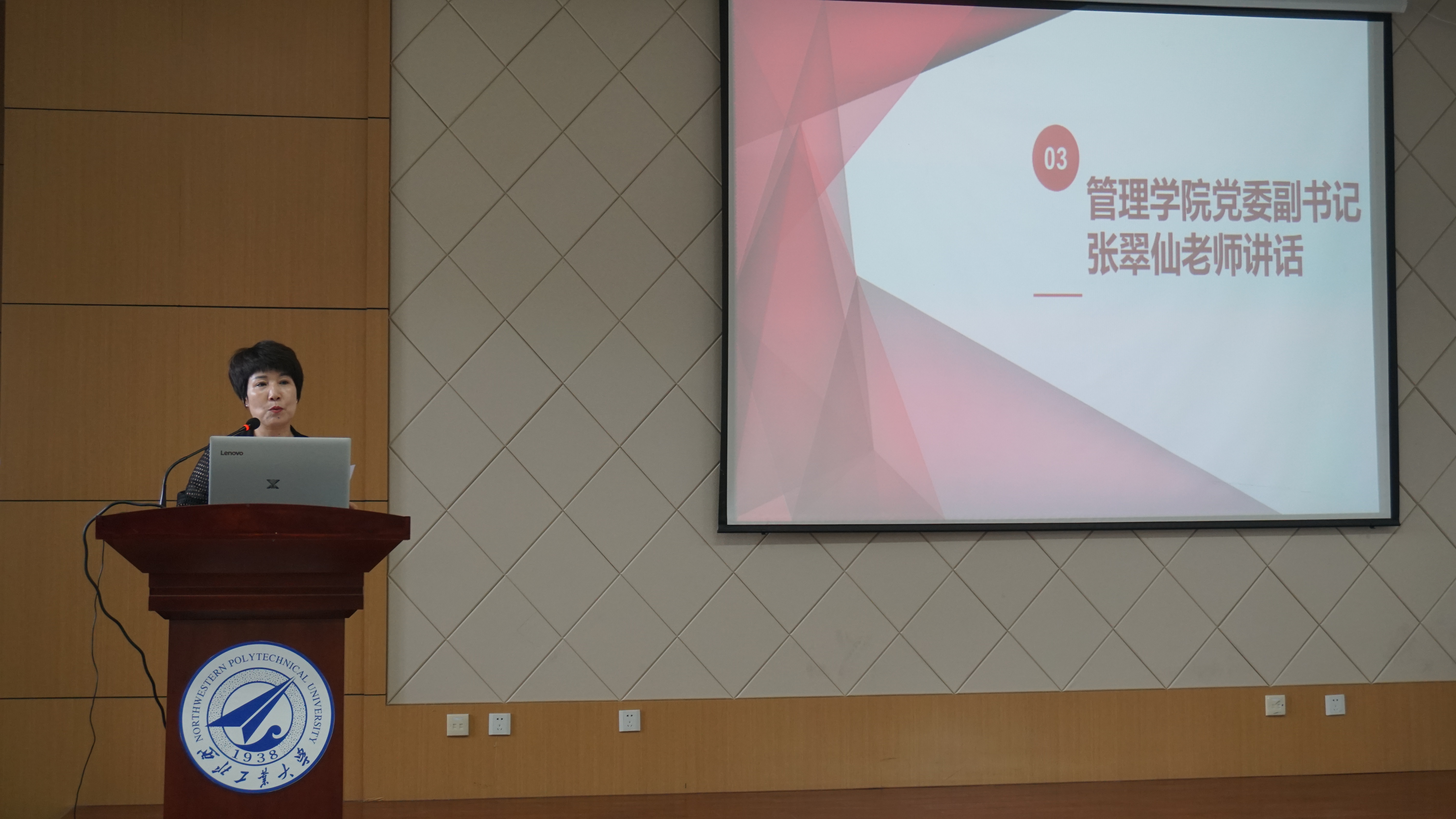 最后,学院党委副书记张翠仙老师进行了本次出征仪式的总结。张老师指出,社会实践和实习都是同学们的第二课堂,要在实践、实习的过程中学习知识,做事情要坚持,要能吃苦。更重要的是,同学们要牢记“公诚勇毅”的校训与“三实一新”的校风,在实践、实习的过程中要拿出西工大作风,展现出我们西工大学子的精神风貌。