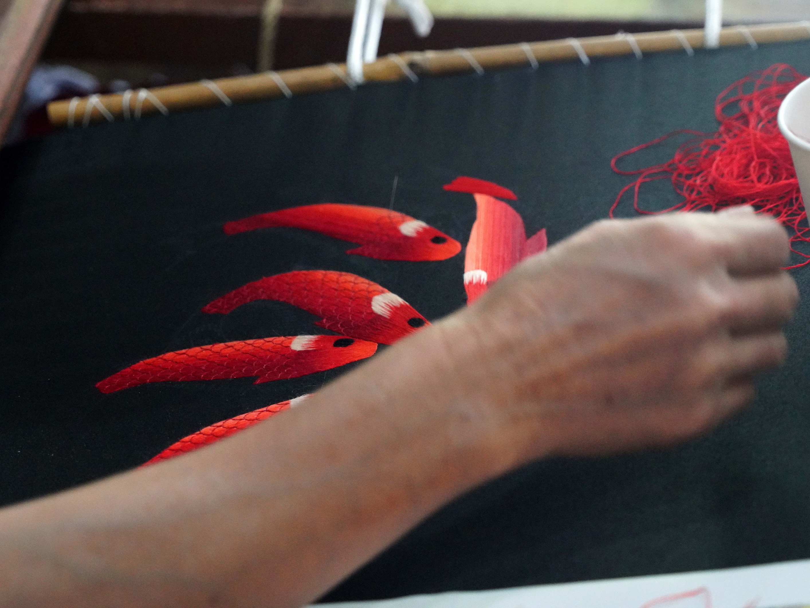7日上午,实践队到达由带头人李惠莲申请注册的太阳鸟工艺品合作社。太阳鸟工艺品合作社现有社员260多名,带动周边从业人员4800余人。李惠莲提到,政府会不定时请刺绣方面的专家来教传习所的学徒们更专业的手工技艺知识,系统化地规范刺绣的制作流程。当地的文化馆每年会举行 “香包节”,开办展销会,举办刺绣大赛。