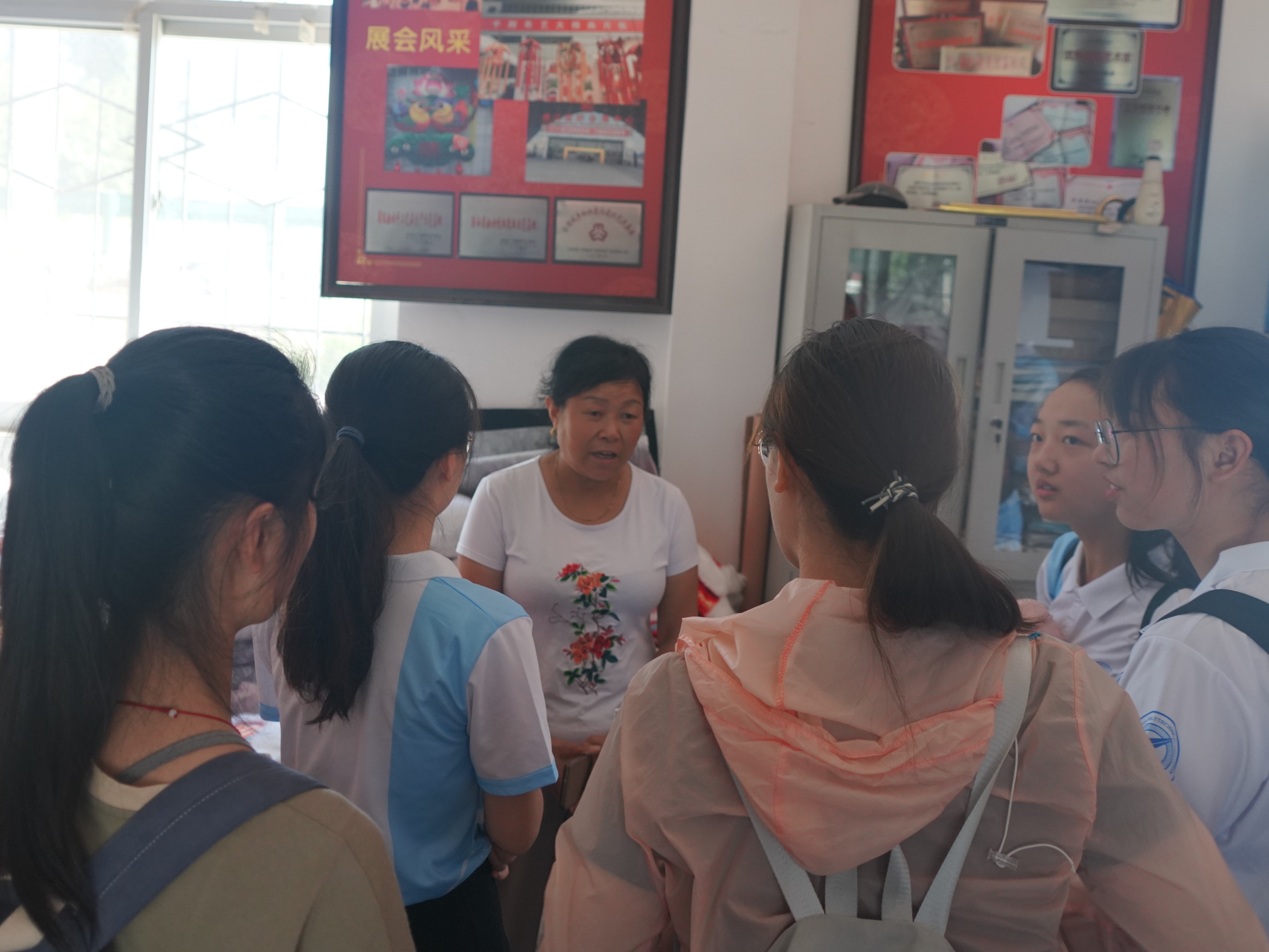 7日下午,实践队拜访了美苑民间艺术品公司。美苑民间艺术有限公司是千阳县创意刺绣传承和发扬的重要媒介,是西秦刺绣的商业化发展中坚力量。