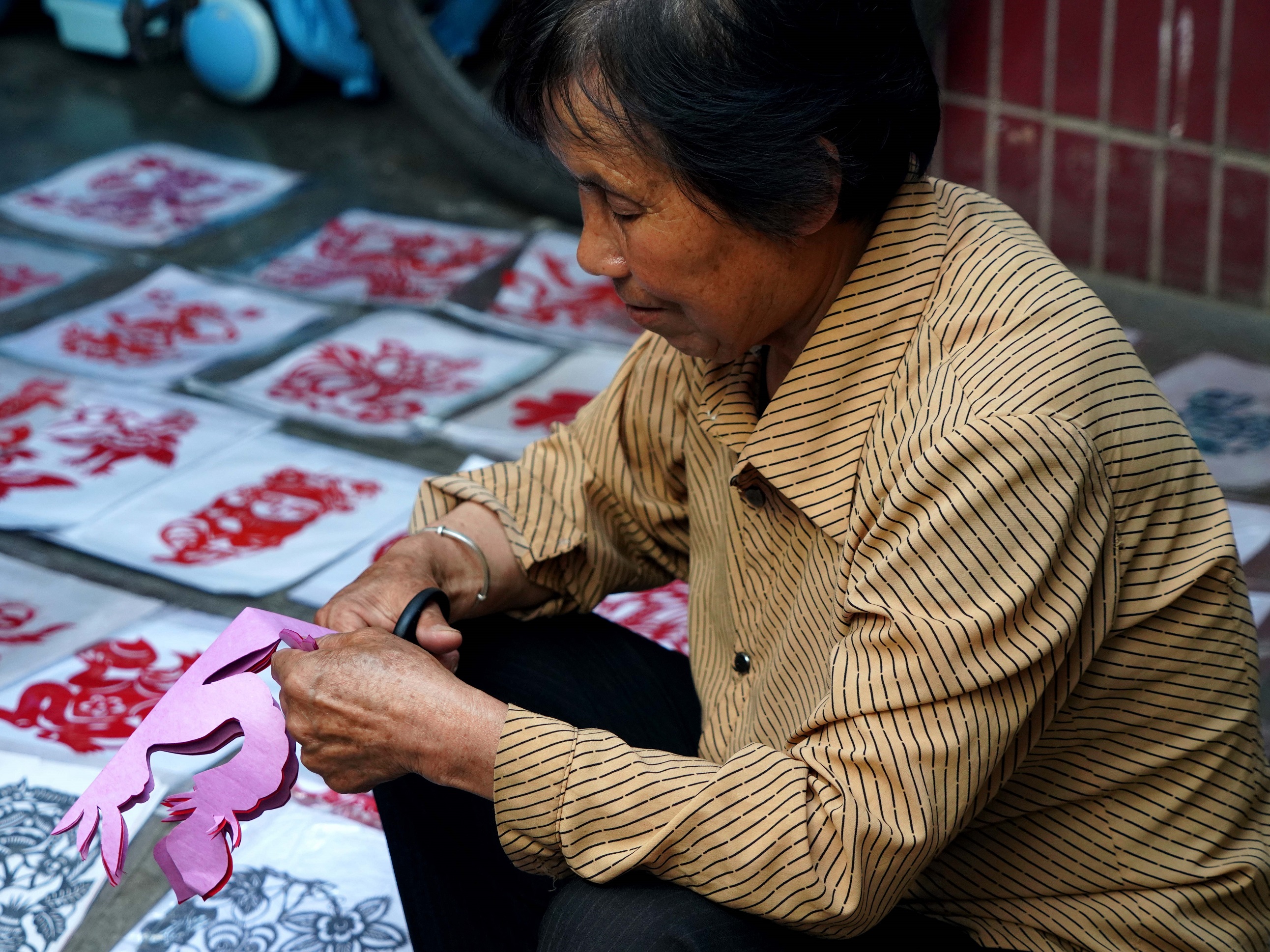 徐有姐将剪纸的80种传统图案创新性地拓展到了280种。徐有姐的剪纸内容涉及广泛,不仅是各种动物,更取材于中国古代神话故事。徐有姐向实践队员介绍了各种剪纸图案的故事和寓意,让大家更深刻地体会了精怪剪纸艺术的魅力。
