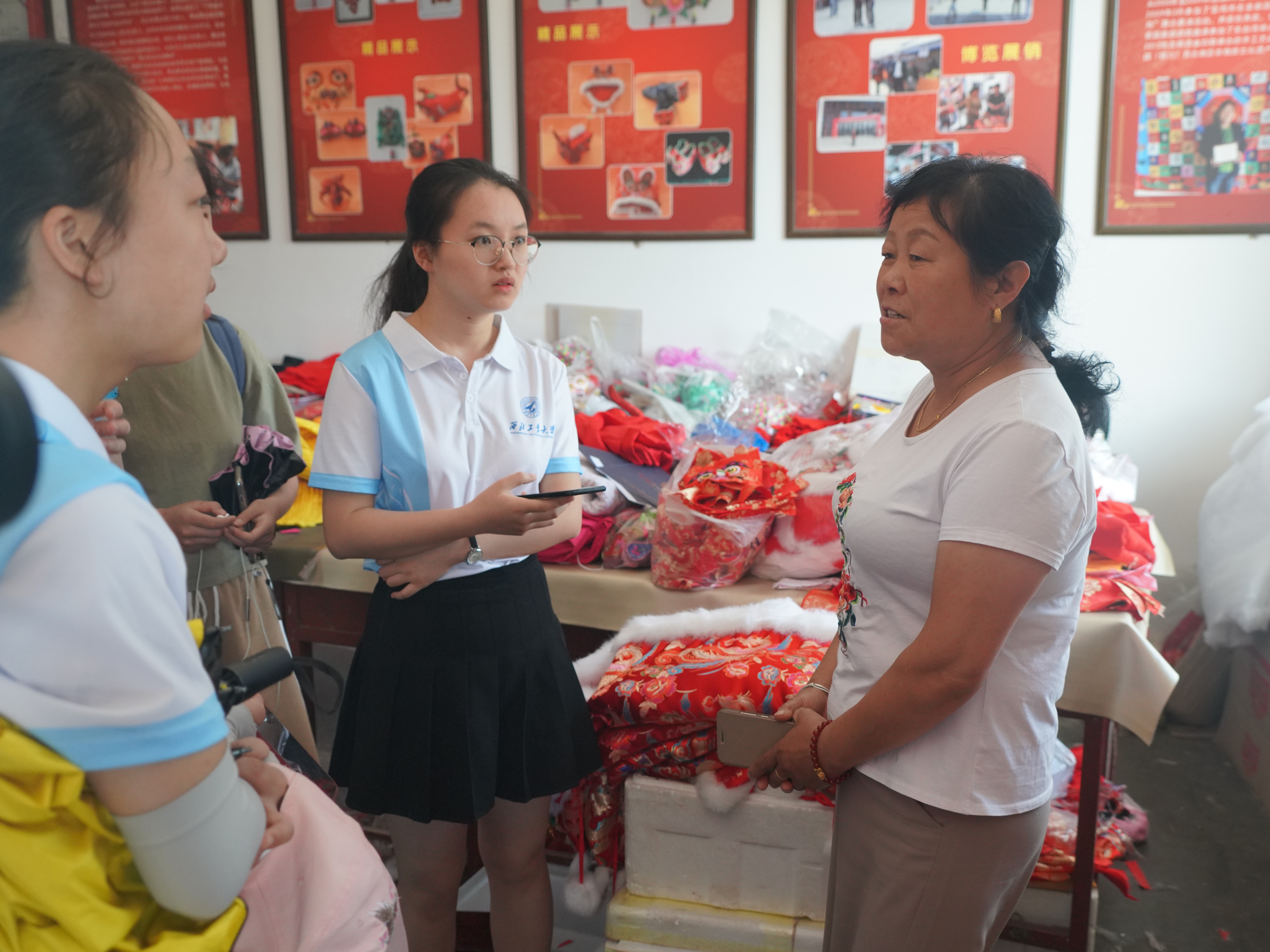 6日下午,实践队一行人到达宝鸡市千阳县后立即前往千阳县体育场,对当地居民进行采访,调查当地民众对本地刺绣等特色文化的了解情况。成员们将采访对象细分,对不同年龄、对西秦刺绣不同了解程度的居民进行针对性提问,获取了当地居民对西秦刺绣更直观贴切的看法。