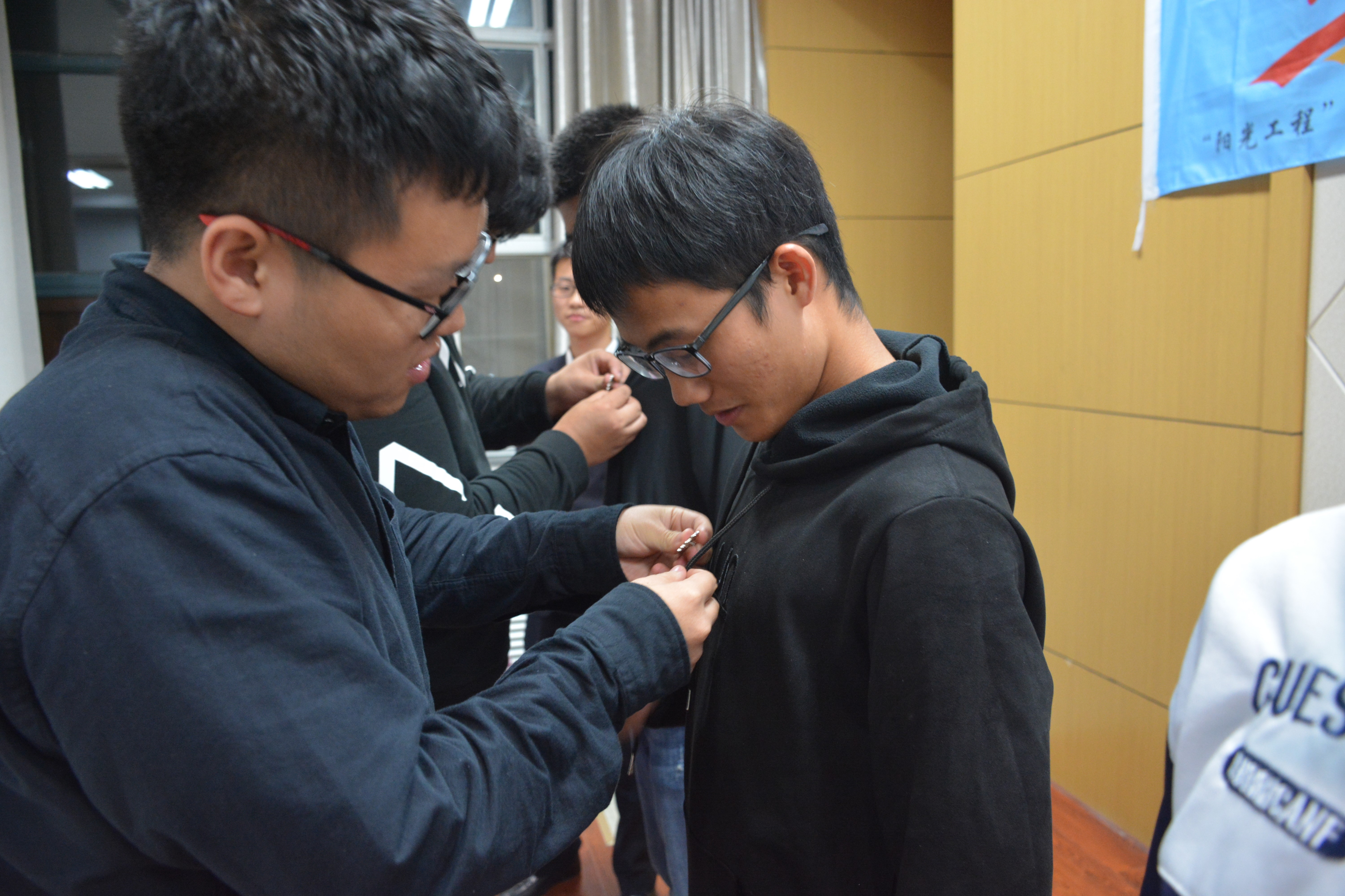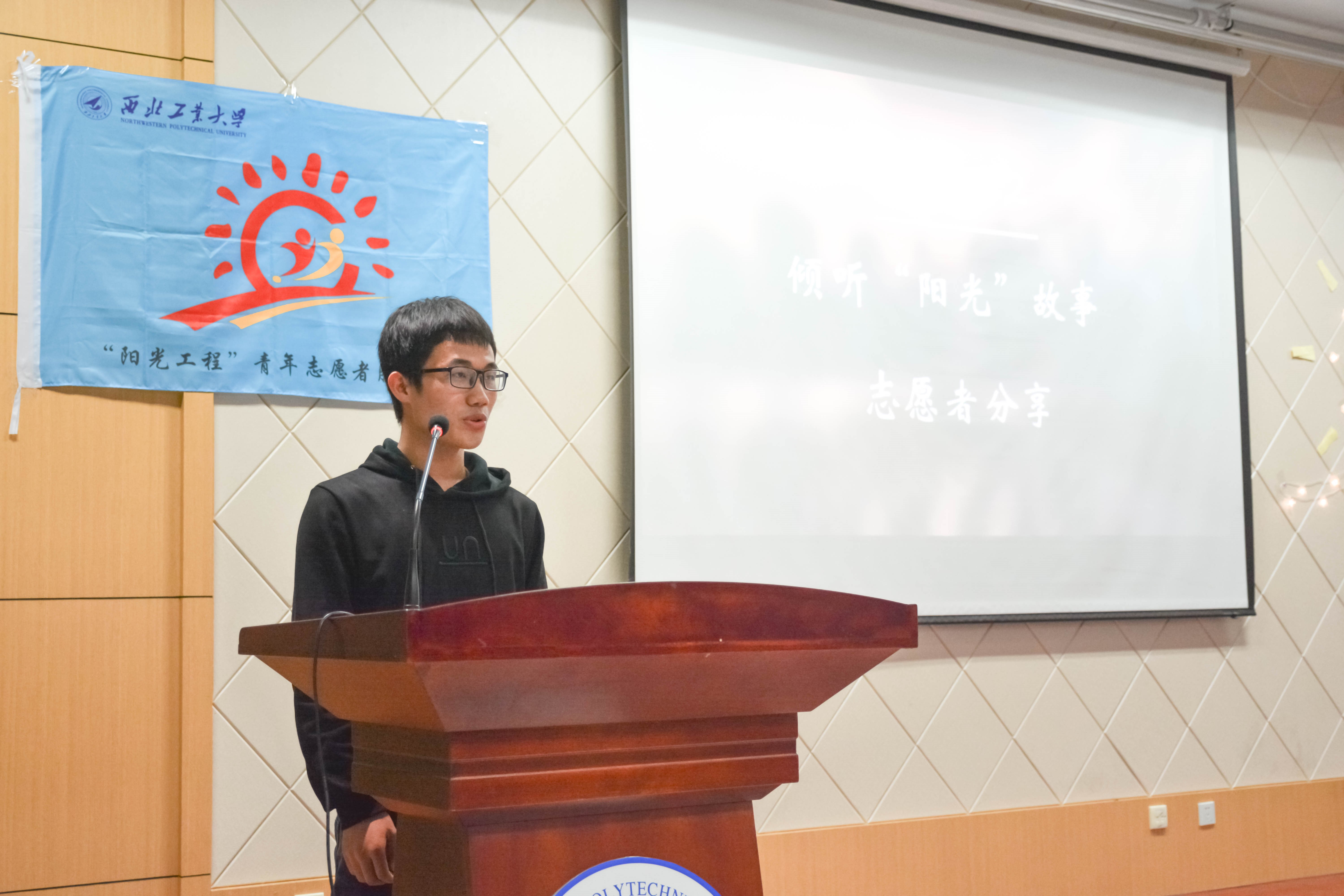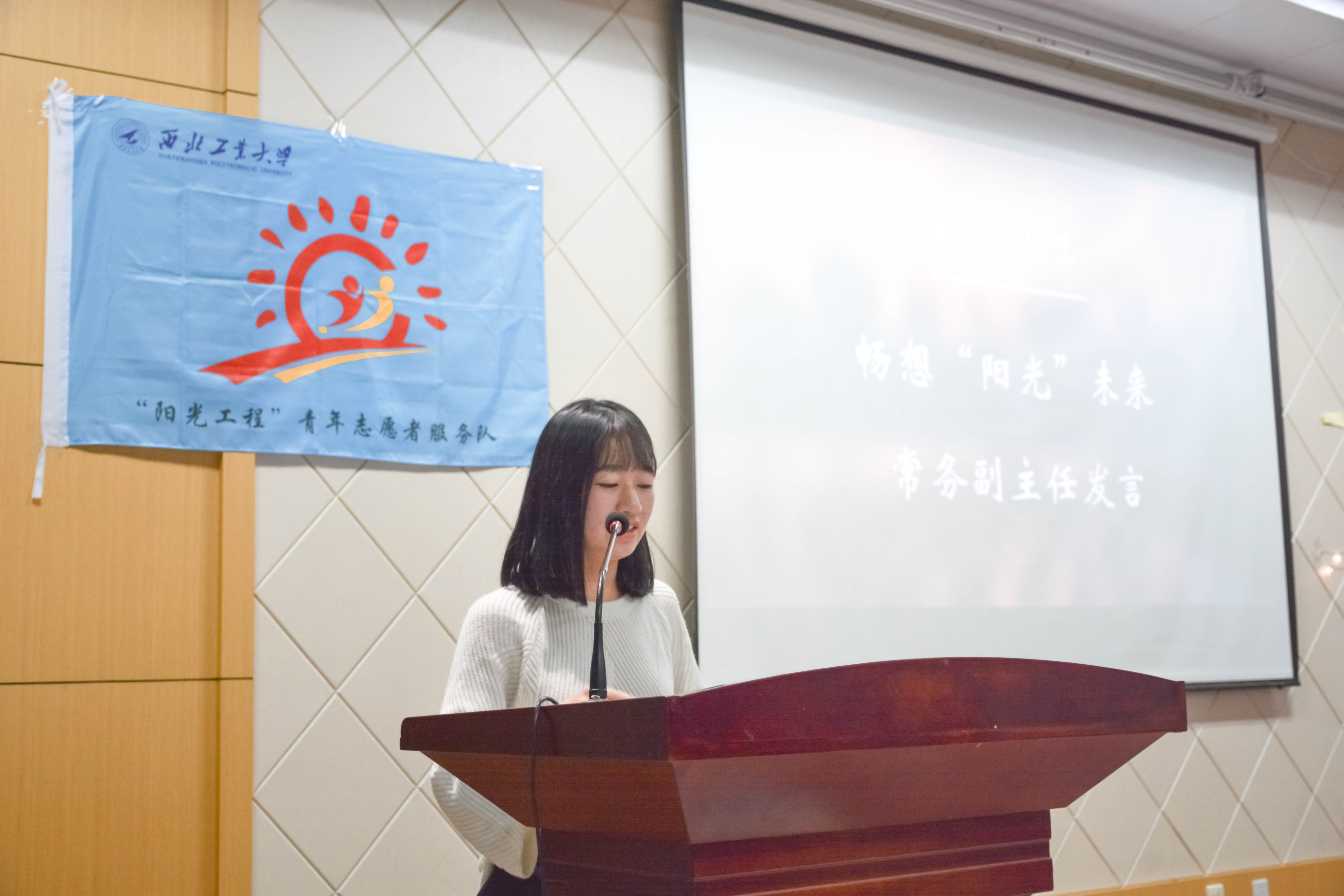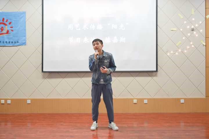第一项,全体参会人员在视频中,回顾了“阳光工程”往期开展的精彩活动纪实和本期志愿者招新时志愿者们的出色表现。第二项,“阳光工程”青年志愿者服务队副主任何雯姿同学代表委员会全体成员对“阳光工程”的主要事务,发展历程,取得的一系列可喜进步和荣誉做了简单讲述,详细介绍了“阳光工程”本期活动的主要内容与安排,强调如今的阳光人的使命和责任,并表达对四十期的志愿者的祝愿与期望。第三项,志愿者代表2017级刘靖伟同学讲述了“支教那些事”,从点滴故事和场景中,尽显青年人通过公益活动的收获、成长、价值与满足。第四项,由“阳光工程”青年志愿者服务队李浩悰同学填词,创作了歌曲《晓班课的日子》,字里行间注入了志愿者对“晓班课”孩子,对“阳光工程”所有受助孩子的关爱与祝福,表达了所有阳光人对志愿工作的享受和珍惜。第五项,志愿者代表2018级叶剑刚同学带领全体志愿者起誓,郑重承诺对志愿活动的担当和责任。宣誓结束后,王泠老师、薛力老师、苏国勇老师为志愿者代表佩戴“阳光工程”徽章。随后,2016级陈嘉翔同学带来独唱歌曲《在这个世界相遇》。最后,王泠老师宣布第40期支教活动正式启动。此外,她讲述了对“阳光工程”二十年发展的一些感悟,希望每一位志愿者应以主人公的责任意识和全局性站位,发现新机遇、迎接新挑战、开拓创新,共助团队焕发活力与生机。