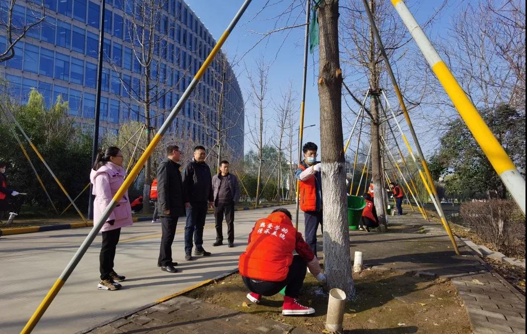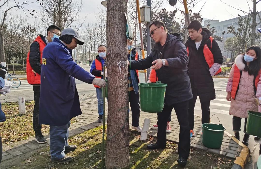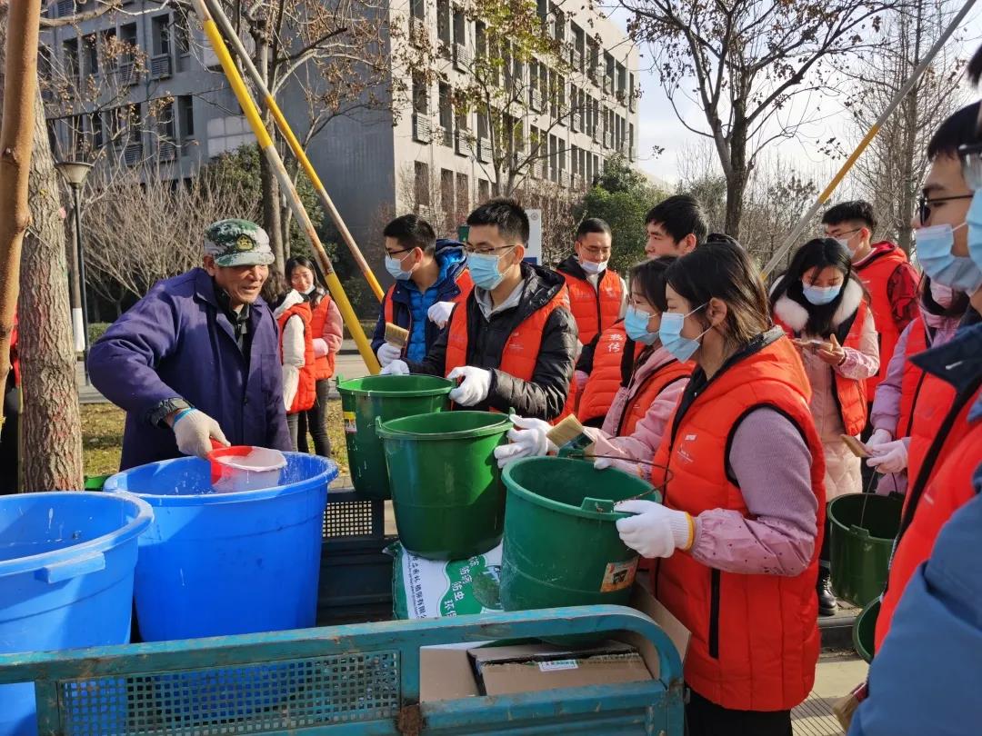入冬以来,天气渐寒,amjs澳金沙门通过“劳动育人”平台,在全校招募志愿者,联合我校后勤产业集团物业服务中心,12月11日上午,在长安校区开展“一夜扫寒,万木漆暖”的特色志愿活动,为树木涂白,做防冻防虫保护。