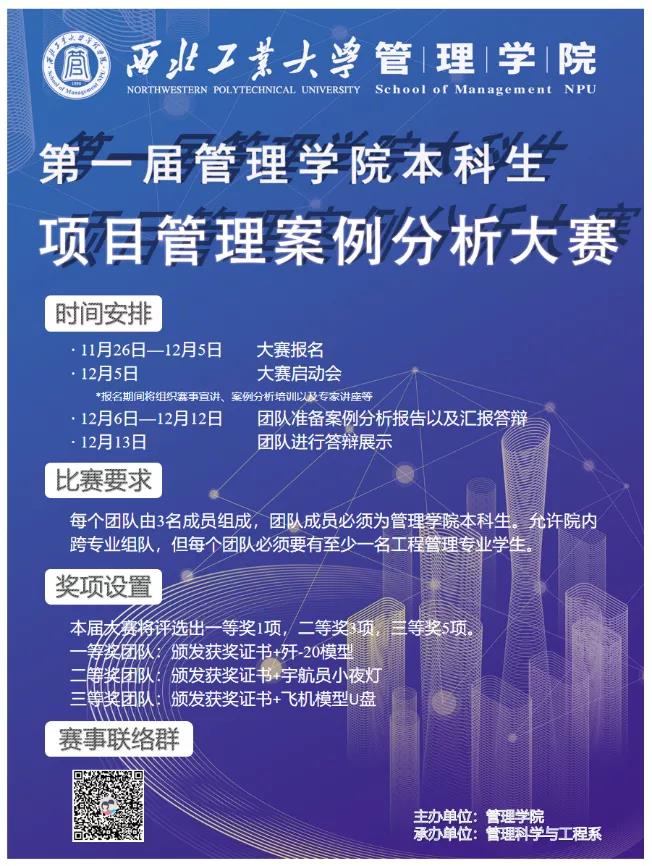 为激发广大学生学习项目管理理论,关注工程管理实践的热情,营造独立思考、自由探索、勇于创新的良好环境,amjs澳金沙门特主办了第一届本科生项目管理案例分析大赛,由管理科学与工程系承办。本次大赛自11月26日发布以来,得到了同学们的踊跃报名,一共有多达24支队伍报名参赛,经过激烈角逐,比赛于12月13日顺利落下帷幕。