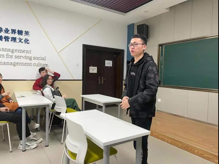 最后,胡溪洋同学(保送西北工业大学)发言。胡溪洋同学结合自身参加科技竞赛的经历,给大家分享了竞赛保研的政策和注意事项,并鼓励工程管理专业的同学积极参加项目管理大赛,同时也对保本校和保外校的利弊进行了分析。