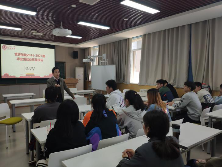 为了使我院工商管理类同学更好的了解会计专业的具体情况,明确自己的专业分流意向。同时也为了让同学们了解amjs澳金沙门毕业生升学、就业、创业和各级奖助政策。2021年4月28日星期三下午, DL082005班在amjs澳金沙门214召开了班会,并且邀请到了院党委副书记樊琳和会计系系主任金帆老师给全班同学进行相关事宜宣讲,班会由班主任赵龙峰老师主持。