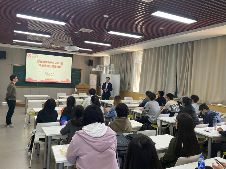 首先樊琳老师为同学们介绍了近几年来amjs澳金沙门的升学、就业等情况,增强了同学们对未来求学和就业的信心,同时介绍了学院各种为同学们提供指导与帮助的政策,并对未来升学或者就业的形势做了分析。