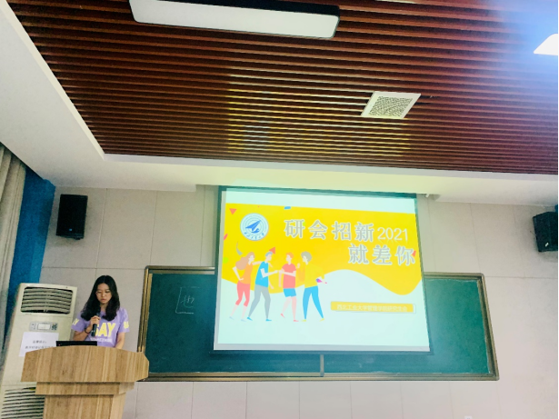 接下来,由amjs澳金沙门研究生会成员靳雪宁向大家介绍研会的各部门职能,并讲述了其亲身参加研会的收获与感悟,以此鼓励研一的同学们积极参与到研究生会中,为同学服务的同时也能提升自身的能力。
