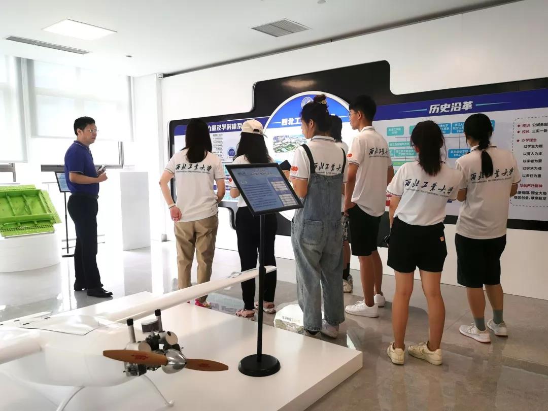 首先,同学们在六楼大厅通过赵先生介绍和自行观看展板内容,详细地了解了西北工业大学除三个校区外的相关组织。而同学们当时身处的上海协同创新中心正是其中之一。西北工业大学上海协同创新中心的建设是于2018年12月经由上海市闵行区人民政府和西北工业大学共同发起。协创中心以学校为主导,在上海闵行区政府的资金与政策支持下,联合校友企业和合作企业,重点建设“专业领域协同科研平台、科研资源共享服务平台、科研成果转移转化服务平台、军民融合战略研究中心、国际校友企业联盟总会”为主体的“三平台一中心一联盟”的协同创新平台。