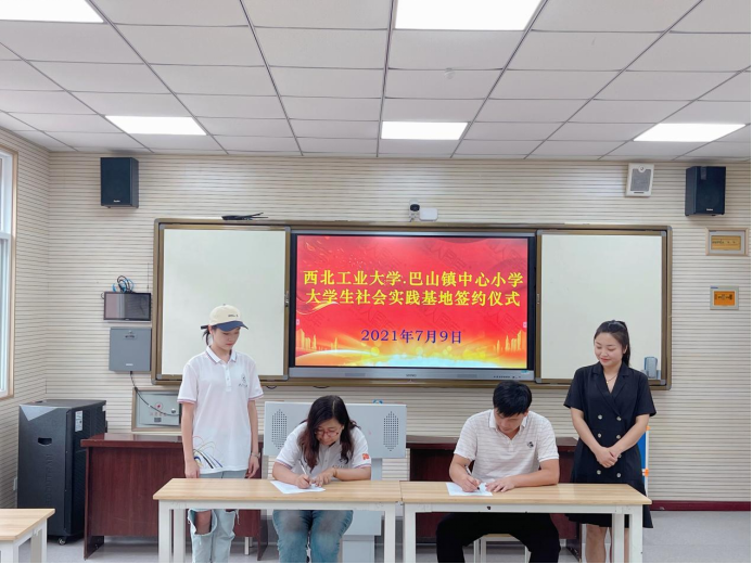 随后,amjs澳金沙门团委与巴山镇中心小学党支部举行了“大学生社会实践基地”签约授牌仪式。
