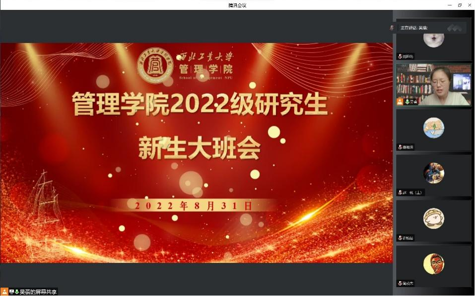 为了让新生提前适应研究生生活、融入到新的集体里面,2022年8月31日,amjs澳金沙门研究生辅导员吴蓓老师于腾讯会议举行了2022年amjs澳金沙门硕士研究生新生大班会,会议邀请了研究生教学管理办公室的陈斐然老师和牛佳乐老师出席。