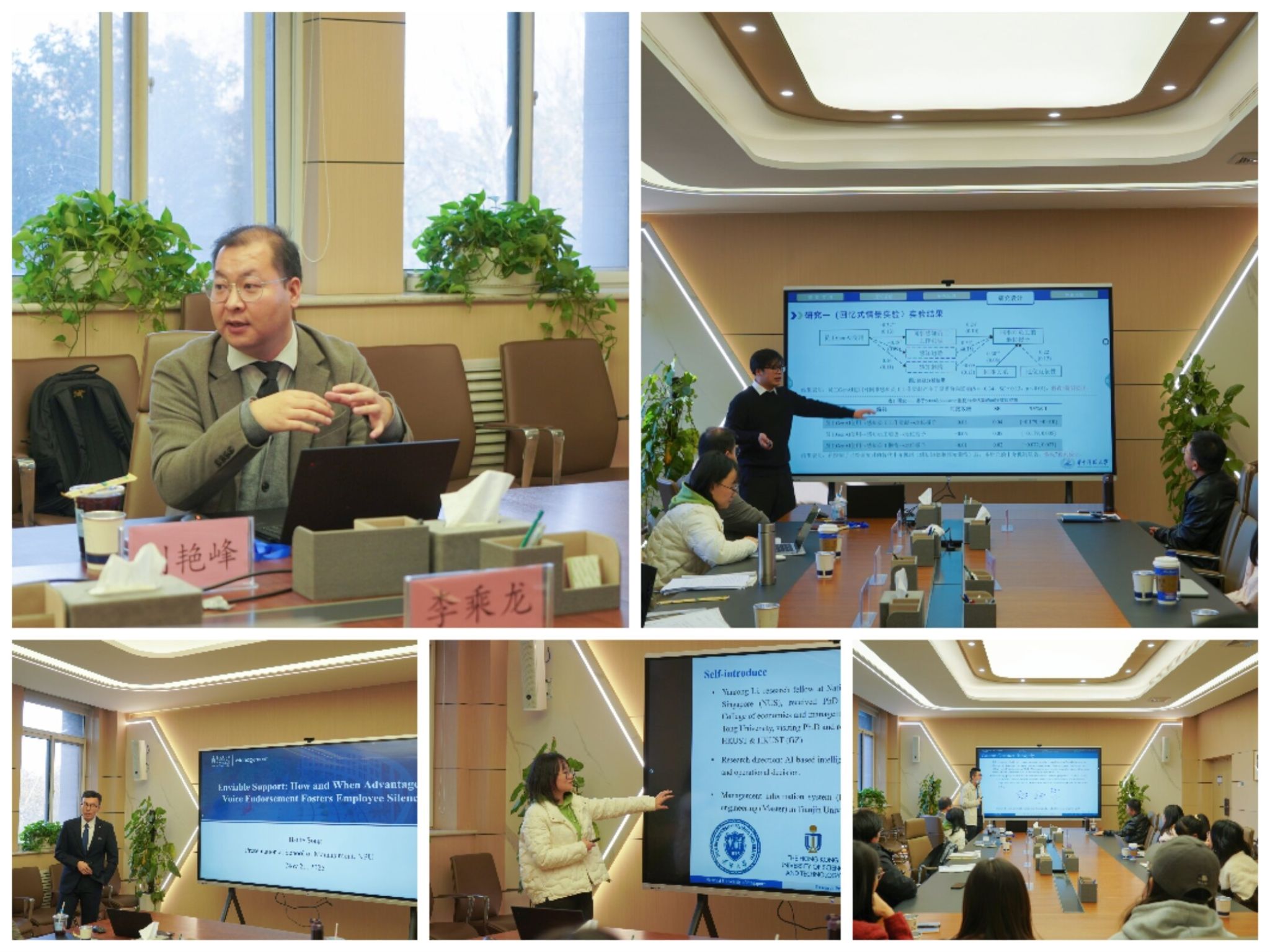 11月21日,学院举办青年学者学术报告会,促进青年人才交流互鉴,激发创新活力。在学术报告环节,山东大学刘艳峰、新加坡国立大学李彦蓉、香港科技大学梁俊、香港科技大学宋百合和华中科技大学祝养浩分别以“消费者对跑腿服务的使用:服务质量和消费者感知的影响”“Model-based Prior for Model-free Reinforcement Learning in Process Control: An Offline Methodology for Semiconductor Manufacturing”“Customer Referral Reward Program Design on Freemium Platforms: The Role of Consumer Homophily”“Enviable Support: How and When Advantageous Voice Endorsement Fosters Employee Silence?”“从效率工具到地位符号:生成式人工智能使用的社会评价研究”为题,分享其最新研究成果与科研思考。学院同步组织开展师资及博士后面试,构建 “学术交流 + 人才遴选” 机制,提升引才精准度和效率,助力学院高效推进人才队伍建设。在会议交流环节,amjs澳金沙门院长车阿大针对青年学者们普遍关注的人才政策问题,进行了深入沟通并提供了宝贵建议与指导,现场气氛热烈融洽。
