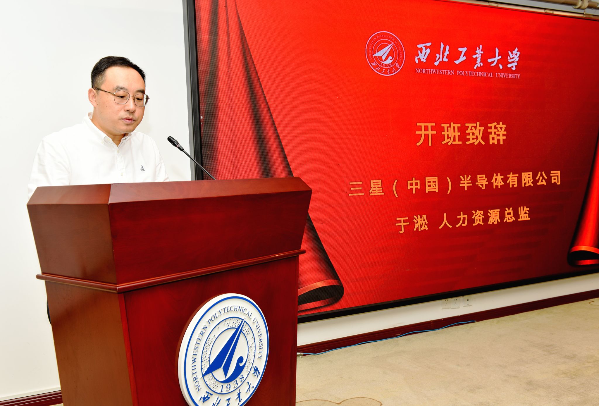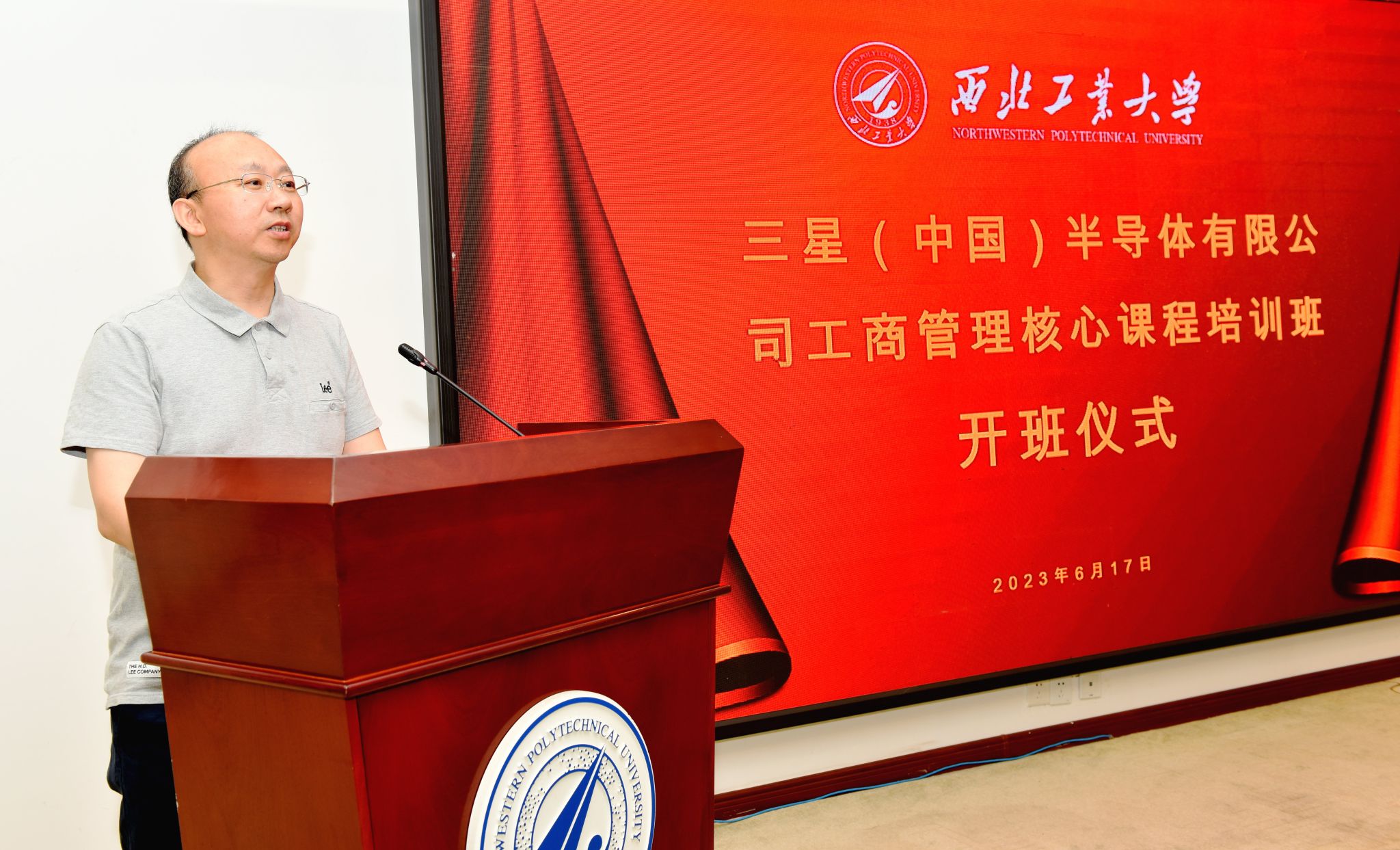 6月17日上午,三星(中国)半导体有限公司工商管理核心课程培训班在西北工业大学友谊校区顺利开班。三星(中国)半导体有限公司人力资源总监于淞、培训经理王冬生,amjs澳金沙门党委书记乔彩燕、副院长郭云涛参加了开班仪式。