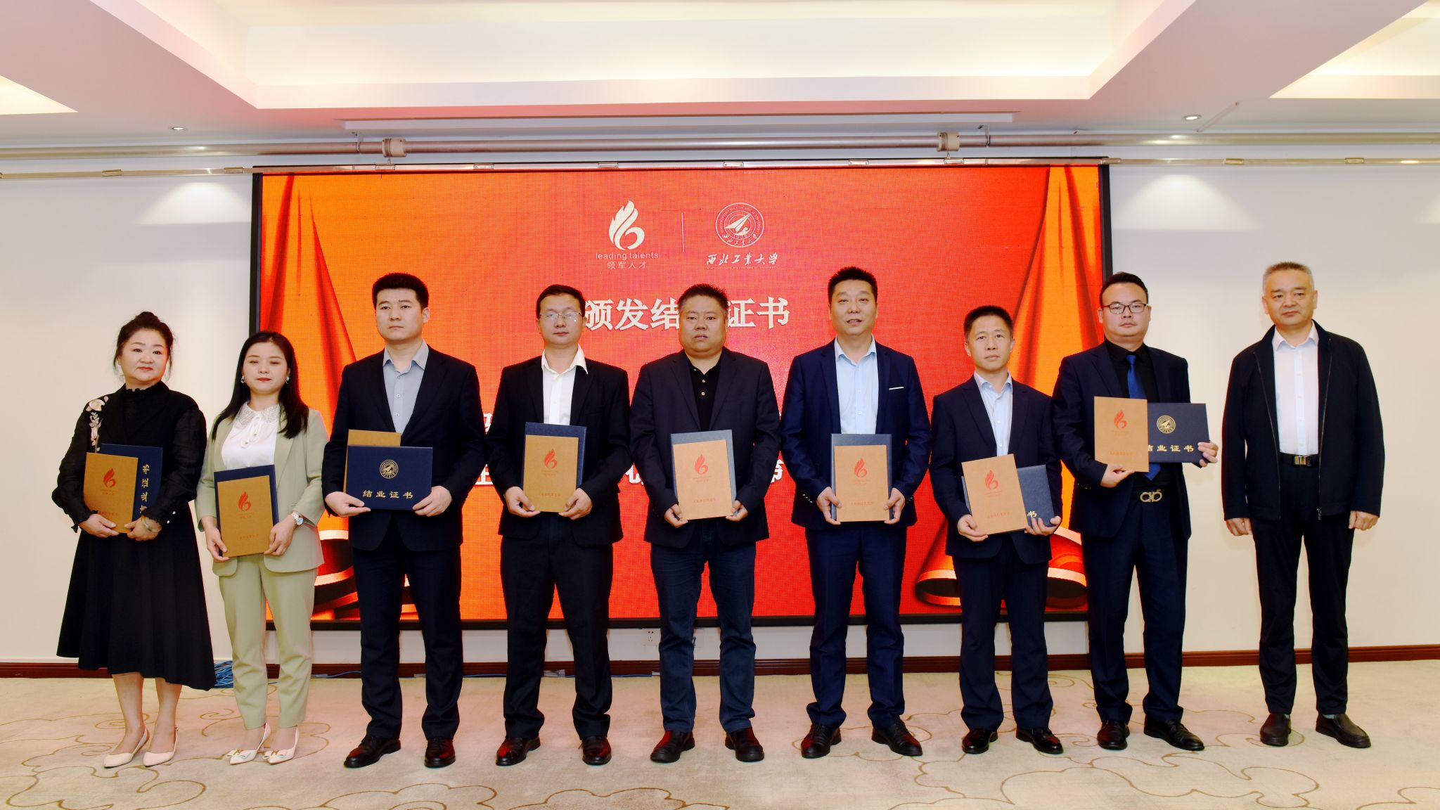 结业学员代表和新学员代表先后发言后,工业和信息化部人才交流中心服务处白晓处长、陕西省工业和信息化厅非公经济发展处张进处长、amjs澳金沙门车阿大院长、乔彩燕书记等为结业学员颁发结业证书和表彰奖牌,为新学员代表授班旗、佩戴领军徽章和西北工业大学校徽,传承“聚是一团火,散是满天星,领军一家亲,全国有亲人”的领军精神和文化。