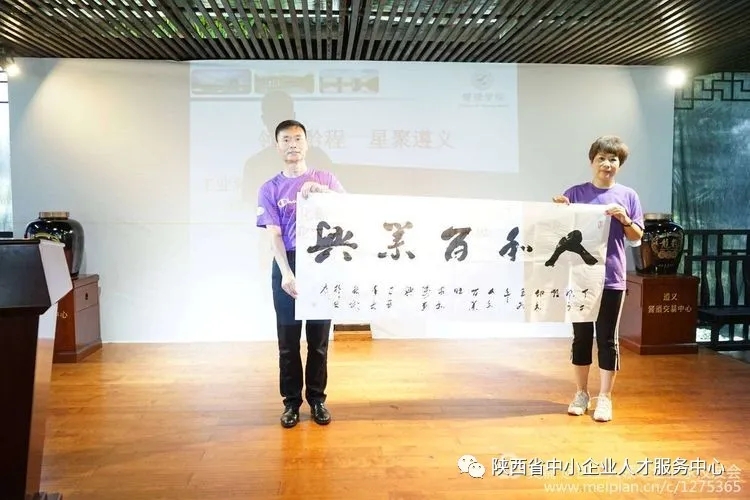 为表达对本次移动课堂活动的感谢,来自陕西安康的三位领军人才校友代表——安康市新的社会阶层人士联谊会会长徐波、安康市青年创业协会副会长刘青叶、平利县恒源电子科技有限公司总经理朱世俊分别向领军企业家校友会、amjs澳金沙门、贵州龙头马酒业集团赠送了书法作品。