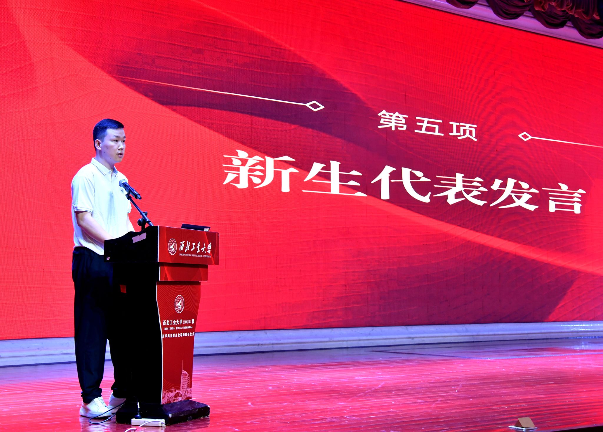 MEM新生代表、昌河飞机工业(集团)有限责任公司培训业务主管汪剑飞,从“瓷都”景德镇的航空报国氛围谈起,表达了对西工大“三航”特色与“为国铸剑”使命的向往。他号召MEM学子践行“三实一新”校风,做到“顶天(心怀国之大者)”与“立地(脚踏三尺工位)”相结合,将课堂知识转化为推动航空产业发展的生产力,让“为国铸剑”成为青春最亮的底色。