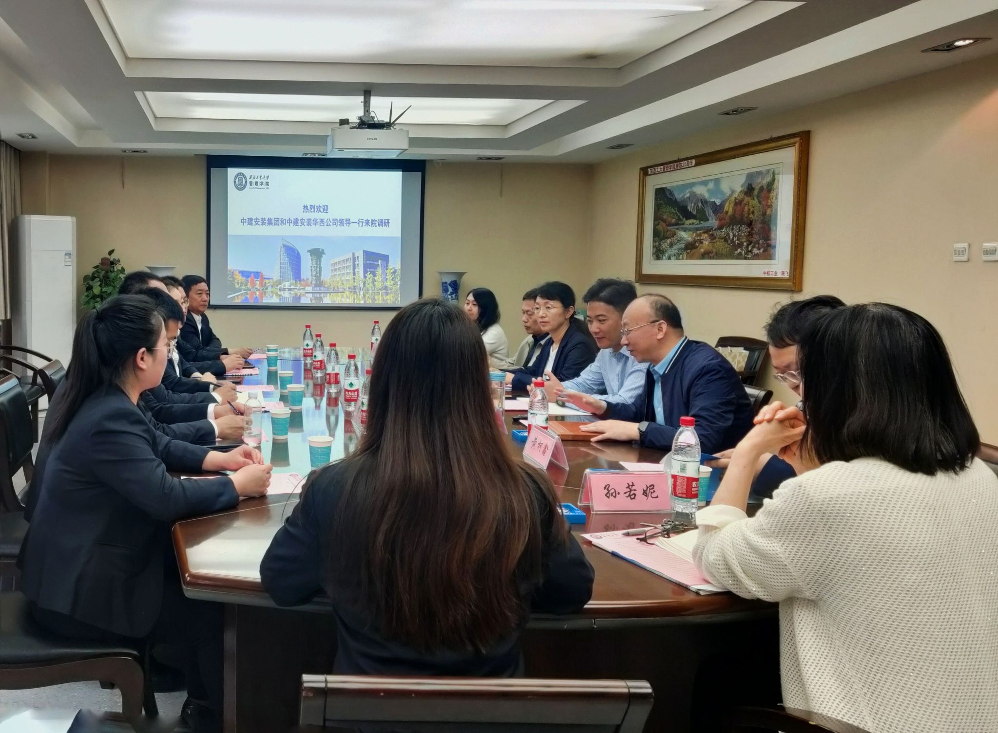 郭云涛副院长首先代表学院对朱玉伟副总经理一行表示热烈欢迎,并简要介绍了学院的发展概况以及学科建设、教学科研、师资队伍建设、人才培养、国际交流等方面的情况,王兆旭副书记就学院的学生实习实践、就业等方面的情况进行了说明。朱玉伟副总经理和曹志新书记分别介绍了中建安装集团和中建安装华西公司的基本情况与发展现状。随后,双方围绕深化院企合作、推进产教融合,就毕业生就业、学生实习实践,聘请企业导师、在职研究生培养、培训等方面进行了深入的探讨和交流。陈乐总经理表示希望未来能够多多引进西工大amjs澳金沙门的优秀毕业生。