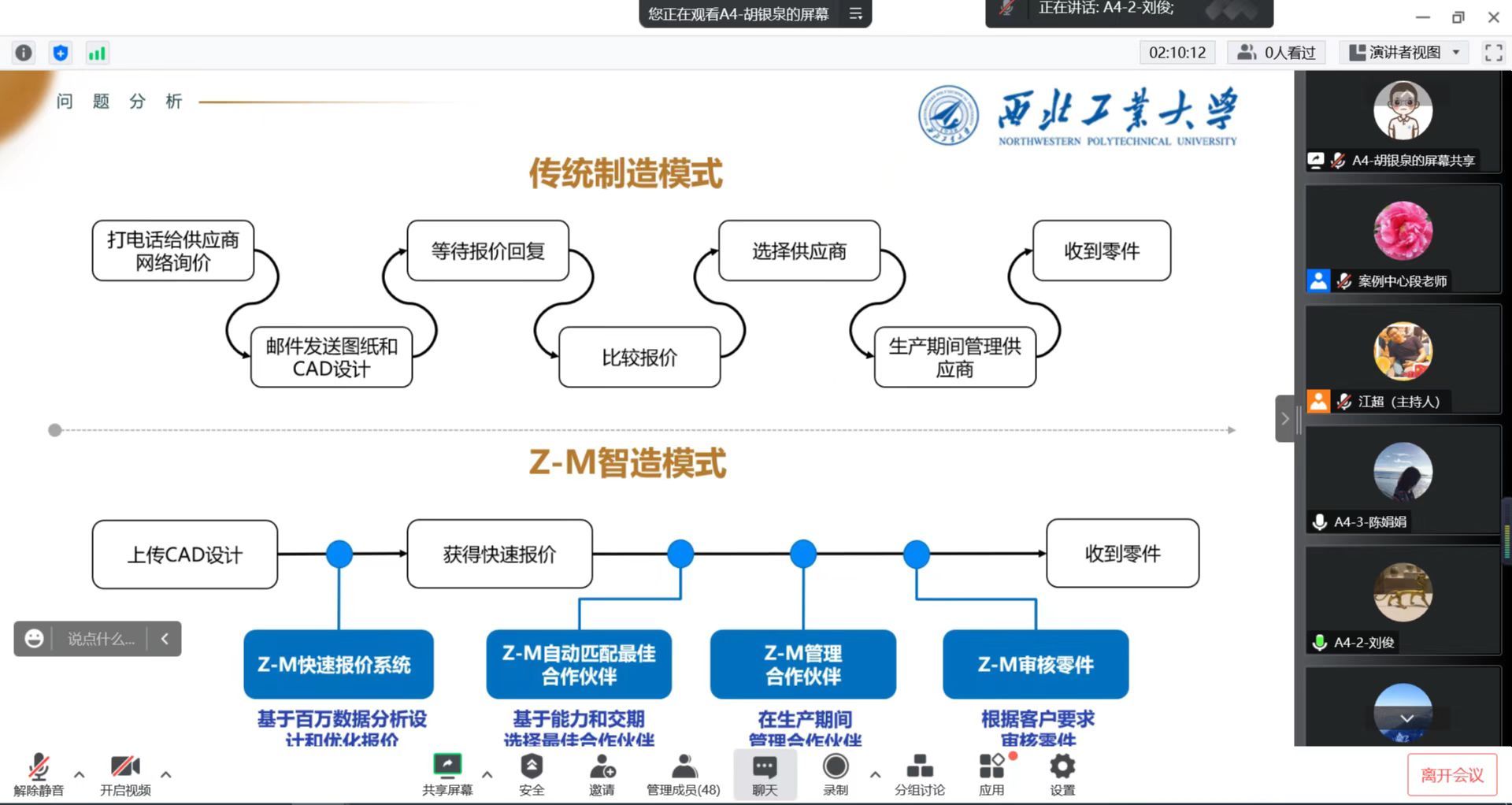 为落实《中国教育现代化 2035》的宏伟规划,提升我校工程管理硕士(MEM)培养质量,11月19日,第一届西北工业大学MEM案例大赛以线上方式顺利举行。本次大赛共有来自MEM专业学位的6支队伍参赛,学院管理案例研究与开发中心金帆主任参加了本次大赛。大赛特邀四川大学商学院梁学栋教授、天津大学管理与经济学部孟俊娜副教授和中航西飞民用飞机有限责任公司孙宝翔高级工程师担任评委,组长由梁学栋教授担任。