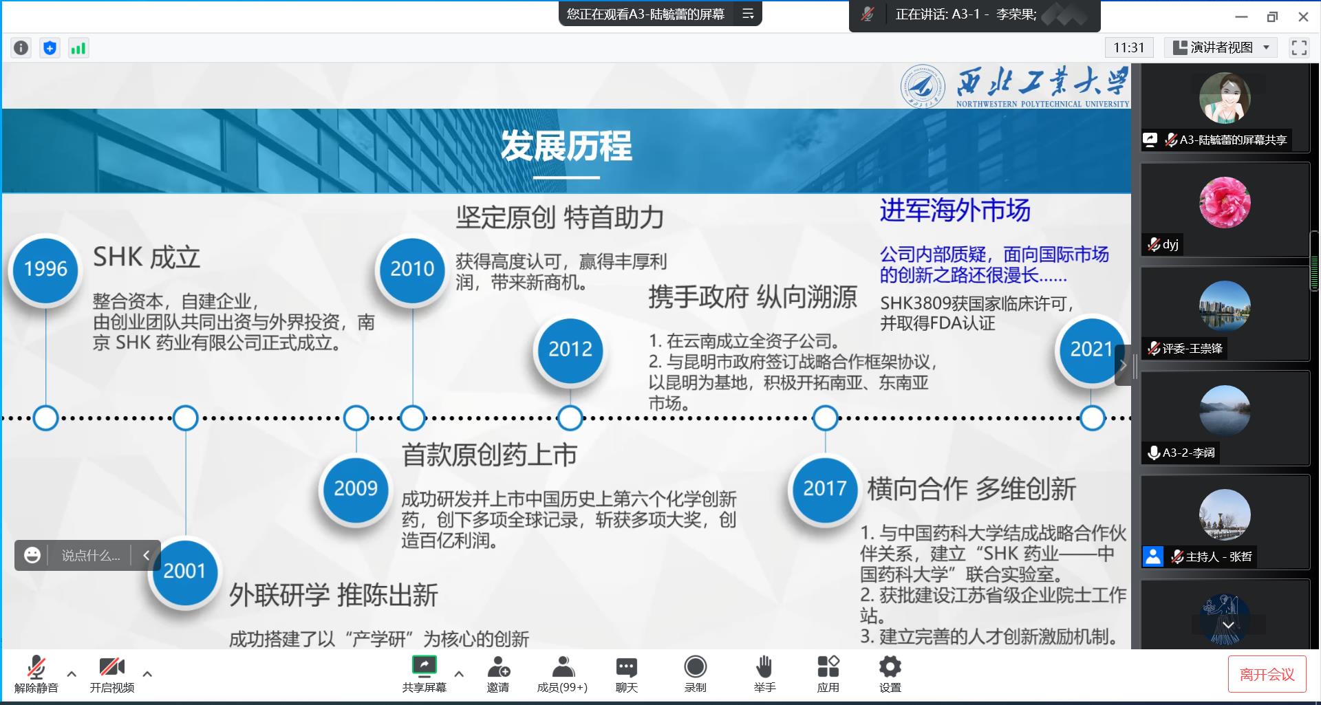 案例训练营以鼓舞人心的开营宣讲拉开帷幕,受训新生和指导教师参加了开营宣讲。本次训练营分为两个批次进行,每个批次第一周下发比赛案例,经过为期一周的紧张准备,团队进行两两对抗的案例比赛。第一批次团队以南京财经大学陈效林副教授开发的《价值互联、同生共荣:SHK药业的创新生态之路》为比赛案例,第二批次团队以浙江财经大学应瑛副教授开发的《正泰集团:传统制造企业的数字化转型之旅》为比赛案例。在指导教师的指导下,队员们充分开展头脑风暴,深挖团队集体智慧。工作之余,队员们挑灯夜战,积极备赛,合理运用战略、营销、创业等管理理论以及PEST、SWOT、STP模型等管理分析工具,广泛收集资料,对案例企业进行深入研究。在分析案例企业成长背景的基础上,队员们搜寻企业存在问题,深挖内在成因,提出有效可行的解决方案。在线上比赛中,团队分工明确、配合默契,队员们各抒己见、妙语连珠、你来我往、唇枪舌剑,问答环节团队双方有的放矢、一语破的,呈现了精彩的巅峰对决。评委老师针对各队参赛情况和队员场上表现进行针对性提问和点评,使得比赛高潮迭起、精彩不断。