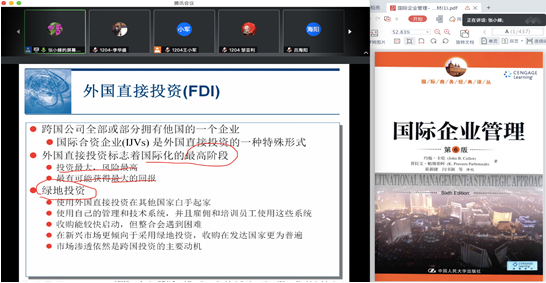 课程中张老师邀请我院企业导师、中科曙光集团副总裁郭莹女士进入课堂,做了《全球治理新时代的跨国企业管理》的课程主题分享。郭莹女士结合自己丰富的跨国企业工作经历,以全球宏观形势与新经济、科技创新与新基建、科技成果的特征理解和转化之路、跨国公司的组织体系、跨国经营中的跨国文化管理、跨国经营中的法律法规风险管理等内容为主线,分享了她在国际合作领域的独特见解,并解答了同学们所关注的问题。郭莹女士精彩的职场经历,开放前瞻的国际合作素养和丰富的多文化沟通与交流经验,让同学们深受启发和激励。