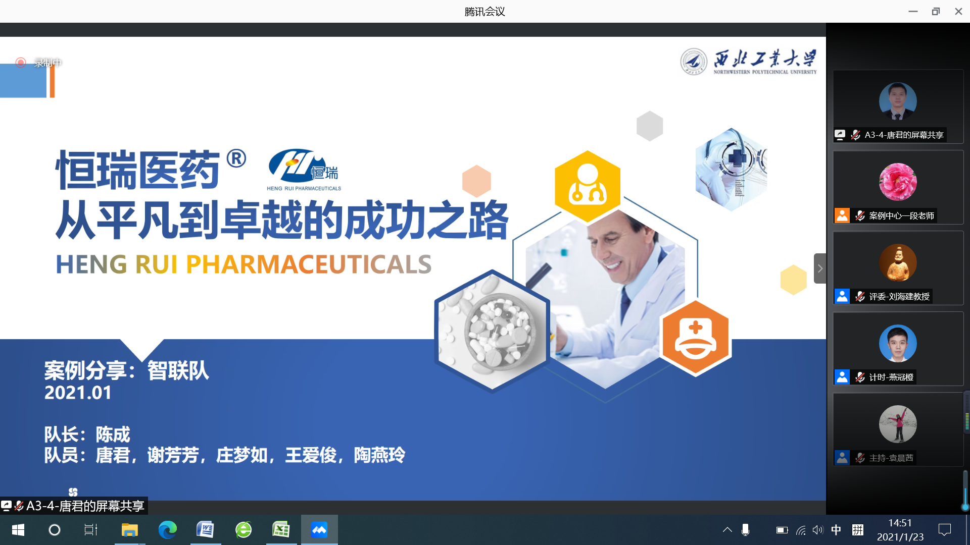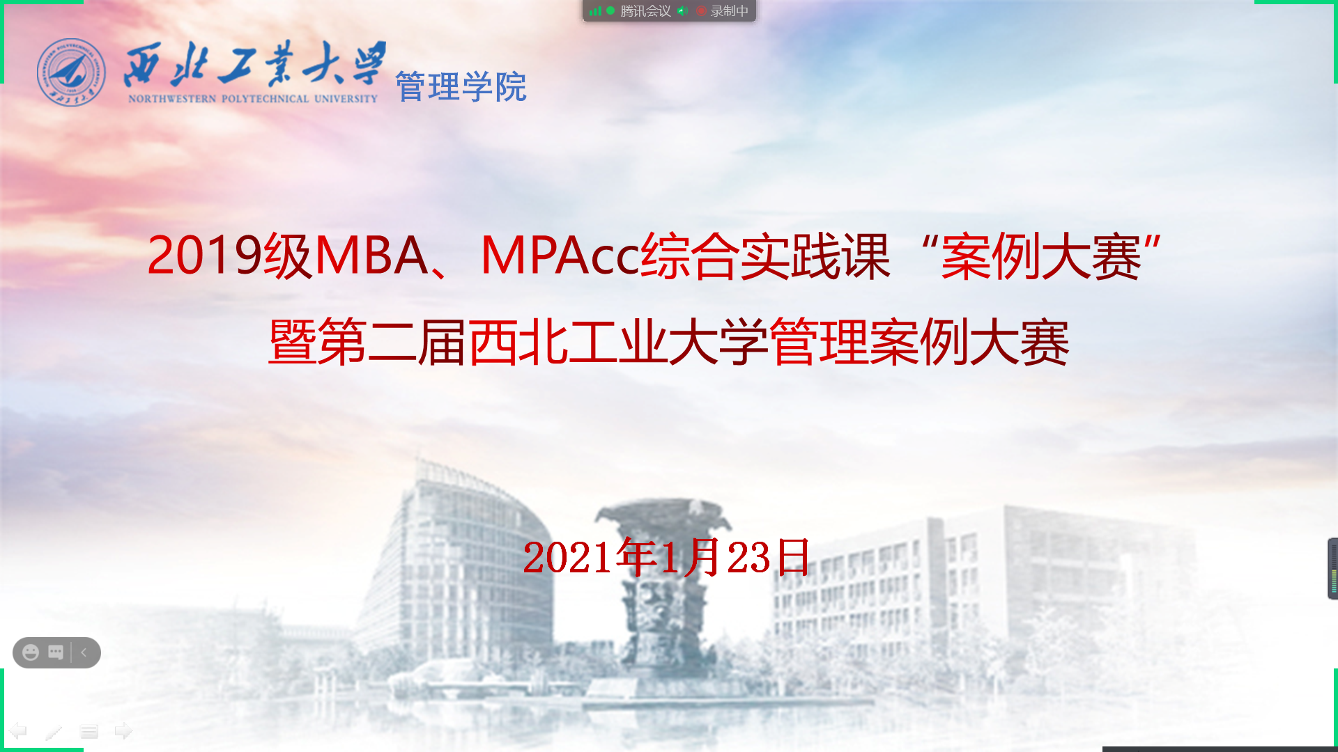 1月23日,经管理案例研究与开发中心精心筹备,我院2019级专业学位研究生综合训练课“案例大赛”暨第二届西北工业大学管理案例大赛成功举办。受新冠肺炎疫情防控影响,本次大赛采用腾讯会议平台线上进行。往届全国管理案例精英赛总决赛冠军教练——西安交通大学amjs澳金沙门张庚淼教授、大连理工大学经济amjs澳金沙门林海芬教授和本次案例大赛所使用的百优管理案例作者——南京大学商学院刘海建教授担任评委,张庚淼教授担任评委组长。