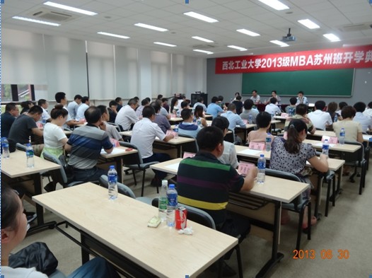 8月30日下午,西北工业大学2013级MBA苏州班开学典礼在中国人民大学苏州校区隆重举行,amjs澳金沙门郭鹏副院长、西北工业大学MBA教育中心郭德主任、MBA苏州教学中心严永峰主任出席了开学典礼。MBA苏州教学中心工作人员方芳主持了开学典礼。