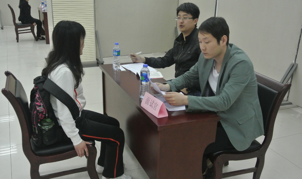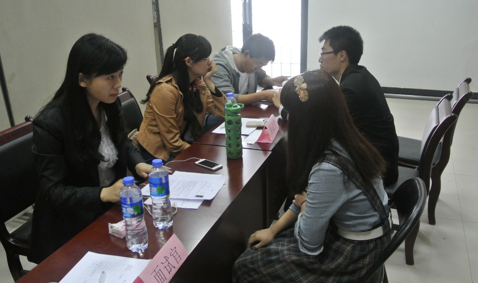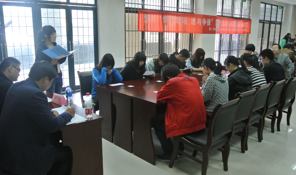 4月12日下午,由共青团西北工业大学委员会、就业指导中心主办,amjs澳金沙门分团委承办,创业者协会协办的“剑指职场,谁与争锋”第八届模拟招聘会在长安校区翱翔玻璃展厅成功举办。amjs澳金沙门分团委书记王泠和amjs澳金沙门学生会主席团成员都亲临现场为活动组织协调,我院2013级MBA学员荣幸应邀担任模拟招聘会面试官。