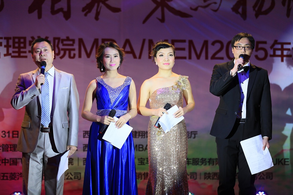 伴随着晚会迎宾曲,我校校友会教育基金会副秘书长可方玲、学院院长赵嵩正、副院长郭鹏、MBA教育中心主任郭德、工程教育(专业硕士)中心主任朱煜明,EMBA/EDP教育中心副主任肖平老师陆续入场,参加本次晚会还有学院各任课老师,以及MBA往届学员代表、我校济南、青岛、广州、苏州等异地教学点师生及在校MBA学员。